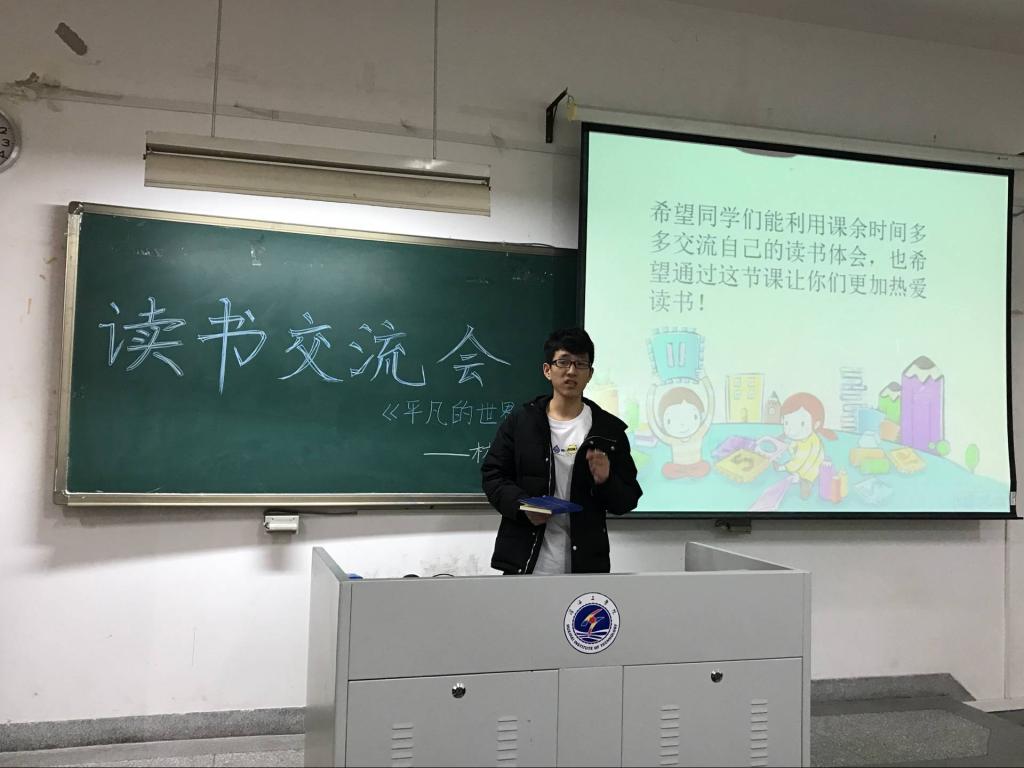 3月7日16时整,化学工程公司材料化学161班在文通楼302教室举办以“读一本好书就是在和一个精神明亮的人对话”为主题的读书交流会。化院团委组织部部长王新与组织部干事杨晨宇参加本次活动,材料161班全体同学参与,团支书刘振林担任活动的主讲人。