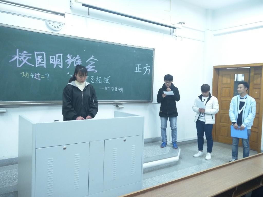 3月19日晚7时,化学工程公司安全工程161班在文通楼309室进行辩题为“功过可否相抵”的校园明辩会活动。团委组织部部长王新作为特邀嘉宾参与本次活动,安全工程161班团支书张傲担任主持人。