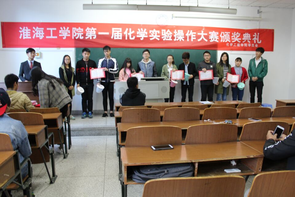 4月7日17时,化学工程公司于主楼108室举行了第一届化学实验操作大赛颁奖典礼。化院团委书记马昌老师、辅导员陈志老师作为特邀嘉宾出席此次颁奖典礼,员工会副主席李昕宇、员工会学习部部长史敏参与颁奖,员工会学习部干事黄伟杰主持仪式。