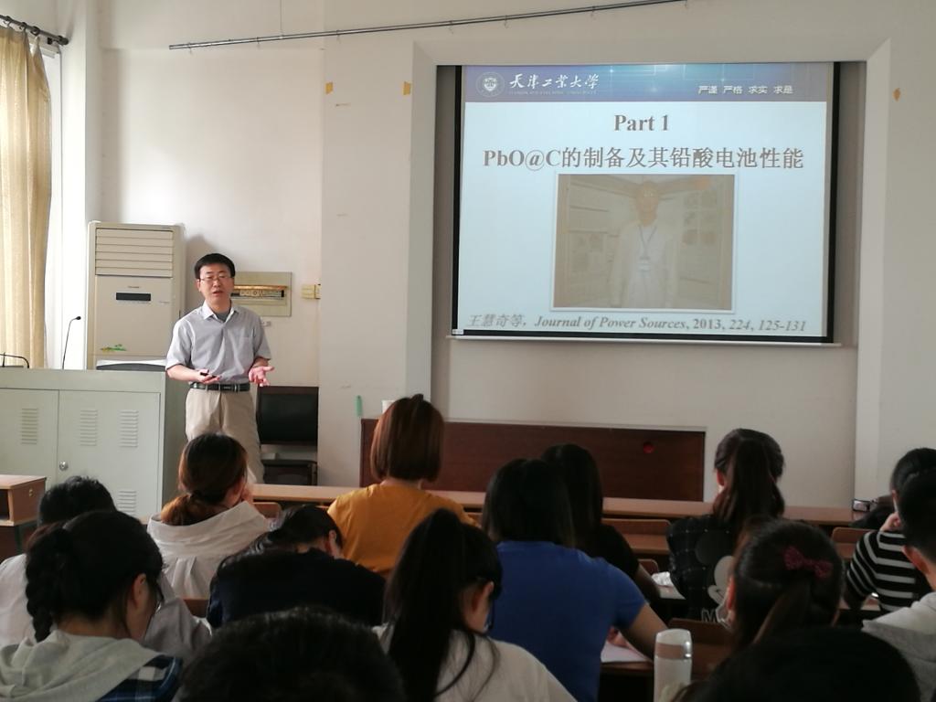5月21日上午十点,天津工业大学博士生导师,中国化工学会无机酸碱盐分会学术带头人,中国电工学会超级电容器专业委员会副秘书长赵永男教授在化学工程公司二楼会议室作了题为《电化学储能材料的制备与性能》的学术报告,报告会由化学工程公司副经理张东恩教授主持,化学工程公司的全体研究生及部分教师参加了此次报告会。