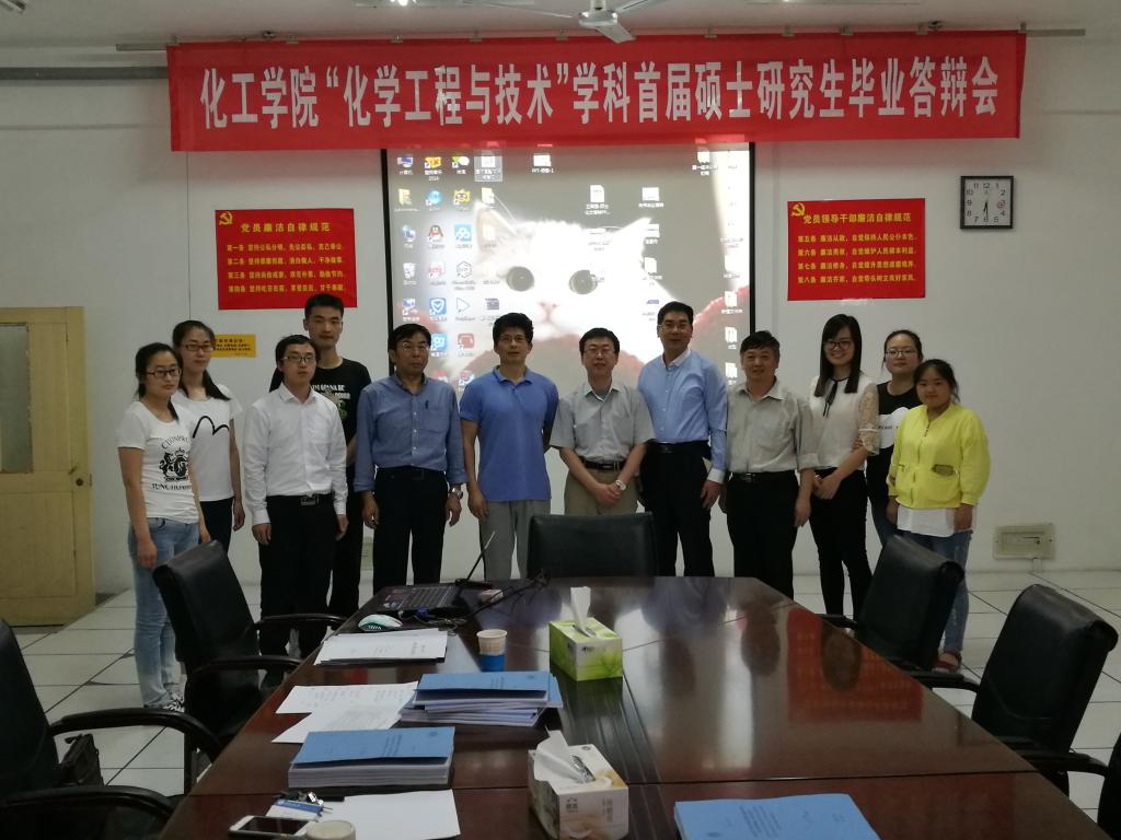 5月21日下午,化学工程公司“化学工程与技术”学科首届硕士研究生毕业论文答辩会在教学主楼如期举行,2014级14名硕士生参加了答辩,2015、2016级25名研究生及部分师生到场观摩学习。答辩会分为两组,天津工业大学博士生导师赵永男教授和淮阴师范公司化学化工公司经理徐继明教授分别担任两组答辩委员会主席,答辩委员还有化学工程公司经理童志伟教授、副经理张东恩教授、张田林教授和王明艳教授,药公司党委书记李树安教授、副经理马卫兴教授和宋晓凯教授,海洋公司马桂珍教授。