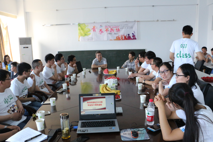 6月3日下午,淮海工公司化学工程公司化工033班毕业生于主楼1006会议室举行毕业十周年返校活动。公司党委书记刘新河老师,化工033班班主任史继斌老师,辅导员马昌老师共同参加了此次活动,化工033班毕业生们身着统一的文化衫班服以及公司部分员工干部共同参与活动。