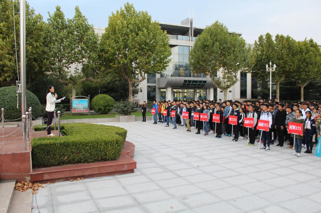 10月16日早6:00,化学工程公司于主楼前举行“红旗飘扬迎十九,寒风凛冽肃学风”主题教育升旗仪式。公司党政领导、全体辅导员和部分班主任出席本次升旗仪式,大一大二全体员工参加。