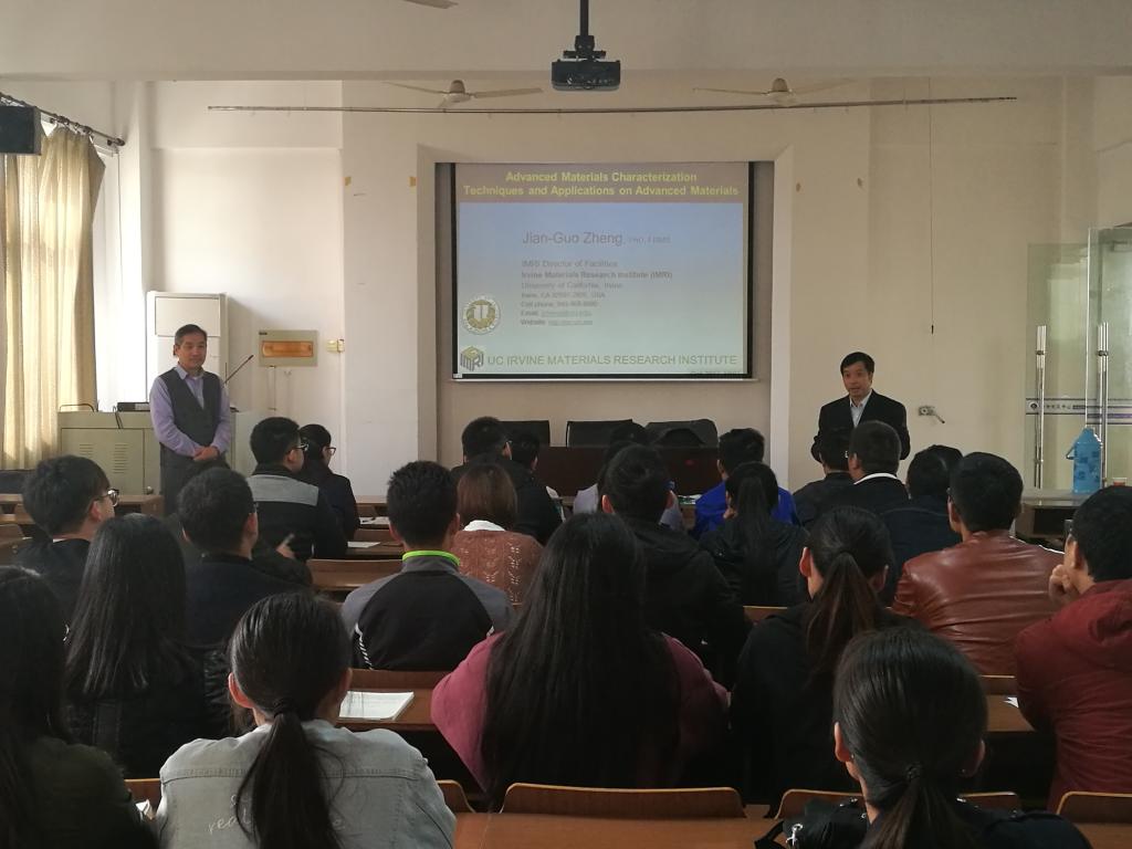 报告会上,许经理首先介绍了郑建国博士的基本情况和取得的成就,随后郑建国博士作了题为“高级材料的先进材料表征技术与应用”的学术报告。郑建国博士介绍了他负责的加州大学尔湾分校研究设备平台中心的基本情况,并从平台中心的先进设备入手,对材料的表征技术进行了阐述,列举了各种先进的检测技术。着重介绍了x射线衍射仪、电镜等数种先进仪器的原理、构造和分类,并结合自己所发表的文章,详细介绍如何应用先进材料表征技术对各种材料进行表征,以解决科研和生产中的实际问题。郑教授的报告内容丰富、生动精彩,参加报告的老师和员工们充分了解到先进材料表征技术在材料研发中的重要作用,使大家受益匪浅。