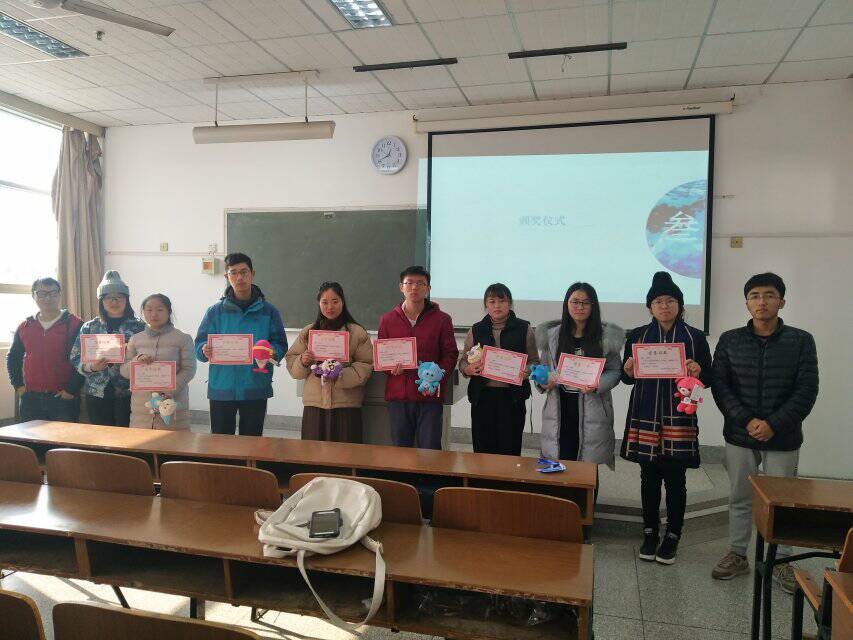经过新媒体采编部成员近一个月的活动宣传工作,同学们积极投稿,征文内容积极向上,同学们不仅展现出色的写作能力,而且表现出极高的思想境界。投稿结束后,经过部门认真的评比与选拔,最终选出14位优秀作品获得奖励。颁奖仪式上,孙威上台发言:“感谢同学们的积极参与,此次活动的成功开展为我们的生活添加了许多乐趣,希望大家如征文题目一般,‘不忘初心,砥砺前行’,采撷自己梦想之花。”随后,主持人宣布了获奖名单:药剂162吴凡凭借《坚守》荣获一等奖,行管161王晨晨、环工171郑德坤获得二等奖,统计151蔡格菁、通信141张磊、数学161周昊获得三等奖,中文152-胡艺龄等八人获得优秀奖,王婉蓉为他们颁奖并进行拍照留念。随着激烈的掌声,此次活动圆满结束。
