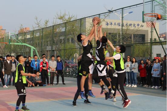 在休息10分钟后,下半场的比赛也如火如荼地进行着,化院队在取得10分以上的优势后,继续保持昂扬的斗志,在下半场刚一开始便频频进球得分,将比分再一次拉开。而文院队也不甘落后,尽力地追回比分。只见那11号球员鲁家讯带球越过中场线,直奔对方场地,文院队的每位球员把他看的死死的,不留任何让他传球的机会。鲁家讯一直与面前的对手僵持着,眼看球就快被抢断的时候,他站在三分线外纵身一跃,空中划过一道优美的弧线,一个完美的三分球,穿过球筐,应声落下。场外传来热烈的呐喊声与鼓掌声,比赛也渐渐接近尾声。双方球员们的竞争越来越激烈,而化院队以一贯的优势保持着比分的差距。最终,化院队以35比17的大比分完胜文院队,顺利进入复赛。
