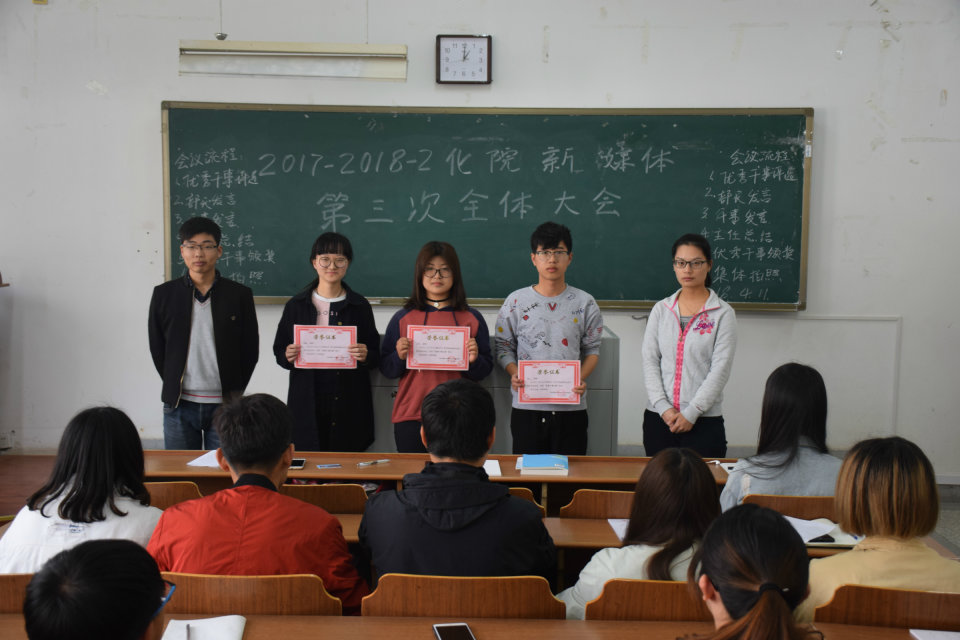 随后,王婉蓉总结发言,希望大家认真对待本月新媒体内部举行的技能考核项目,并且进行自我反思认真负责部门工作,更好的发展部门。主任发言后, 优秀干事名单评出微信微博部李瑶、采编部吴安云、网络技术部管朦获选“优秀干事”,并与主任合影留念。最后,新媒体全体在化工楼前集体拍照留念,全体大会到此圆满结束。
