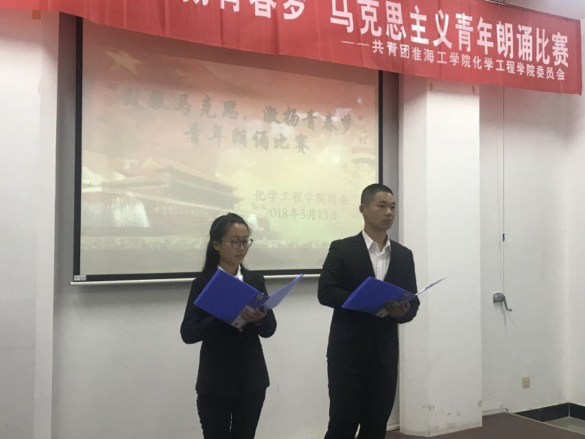 比赛伊始,主持人介绍本次朗诵比赛活动的意义,为了纪念马克思诞辰200周年,重温马克思主义经典。接着,主持人介绍了出场评委及本次朗诵比赛的评分细则,并宣布活动正式开始。比赛中每个参赛队伍都尽心尽力地展示出自己的风采,朗诵内容及气势让台下观众无不拍手称赞,每一个人都融进了浓浓的朗诵氛围中。比赛结束时,马雅楠对本次朗诵进行点评,提到本次朗诵有些同学声音过小,朗诵题材太狭窄等问题。最后,主持人宣布本次比赛成绩,一等奖为材料171班和化工172班,二等奖为环工171班,三等奖为环工172班,并由相关评委为获奖班级进行颁奖。
