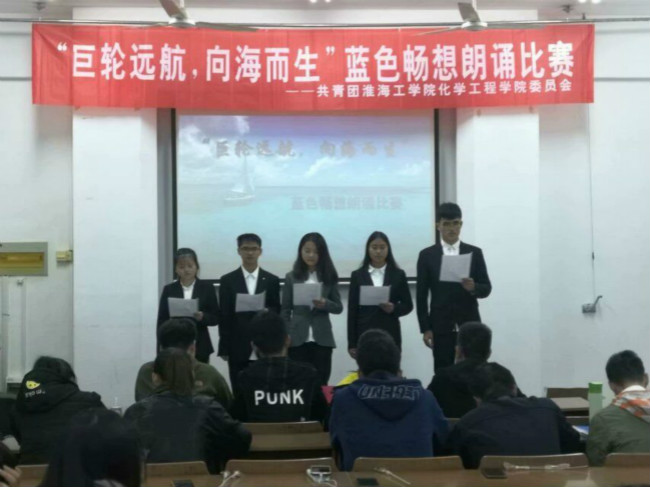 10月27日晚6时30分,化学工程公司团委于化工楼二楼会议室举办以“巨轮远航,向海而生”为主题的蓝色畅想朗诵比赛。公司团委宣传部部长曹海川、组织部部长闫长永、办公室主任吴季、实践部部长王子雄担任本次朗诵比赛的评委,公司团委员工副书记助理张慧平担任本次大会的主持人,化学工程公司大一至大二班级员工代表参加了本次的比赛。