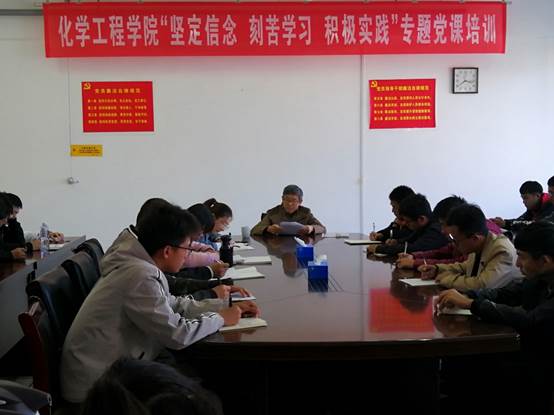 2018年10月31日下午,化学工程公司关工委副主任、老党员史继斌教授为发展对象、入党积极分子上《坚定信念,刻苦学习,积极实践》专题党课。