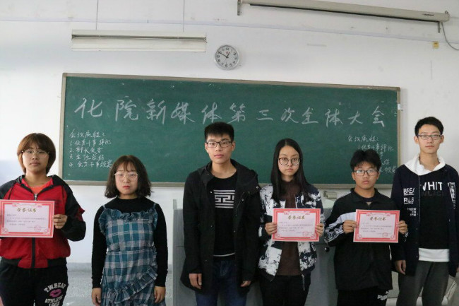 10月31日12时整,化学工程公司新媒体于文通楼114室召开第三次全体大会,新媒体主任陈莉、副主任顾晨晨出席,全体成员参加。