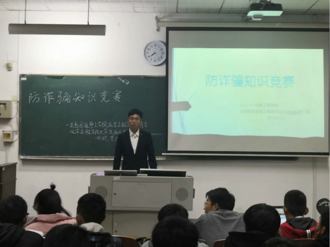 为进一步强化员工安全防范理念,提高员工自我安全保护意识及辨别诈骗手段能力,11月6日晚七时,化学工程公司老员工成长成才服务中心于主楼111室举办以“普及防骗知识,创建和谐校园”为主题的防诈骗知识竞赛活动。大一、大二各班参赛人员及高材182班全体成员参加本次竞赛。公司大成文思实践育人部部长朱佐轩担任本次竞赛主持人。