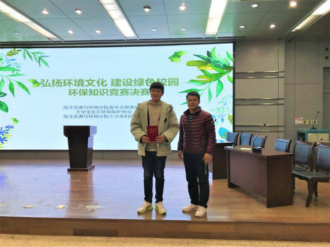 11月27日晚7时30分,“弘扬环境文化,建设绿色校园”环保知识竞赛于艺术楼报告厅举办。海洋资源与环境公司辅导员陈志、化学工程公司辅导员马昌和环工182班班主任余婷婷出席本次比赛。
