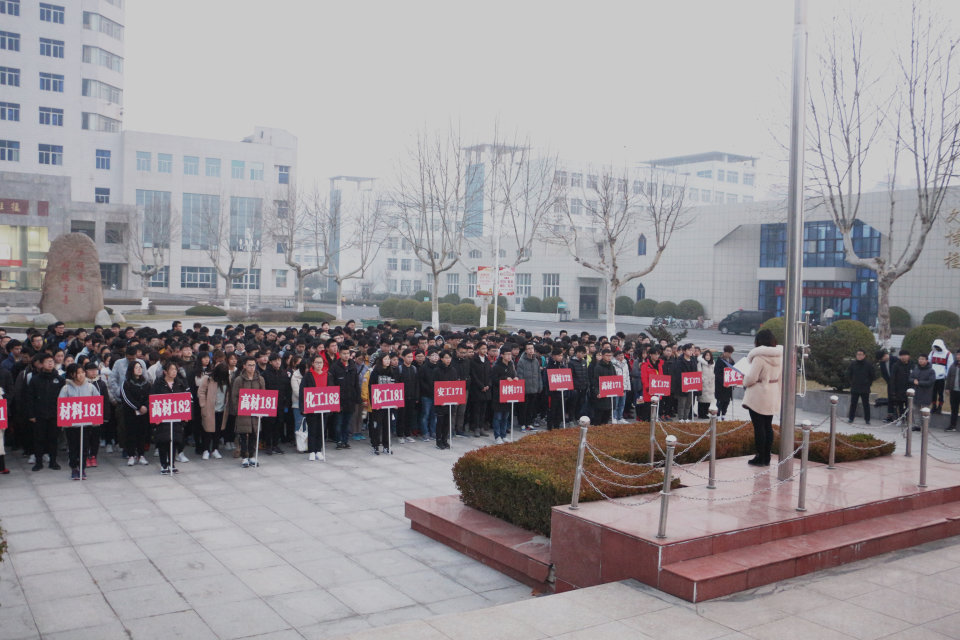3月4日清晨,化学工程公司于主楼前广场举行“奋斗正当时,圆梦江海人”主题升旗仪式。公司党政领导、全体辅导员及17、18级本科生和部分研究生参加了此次升旗仪式。