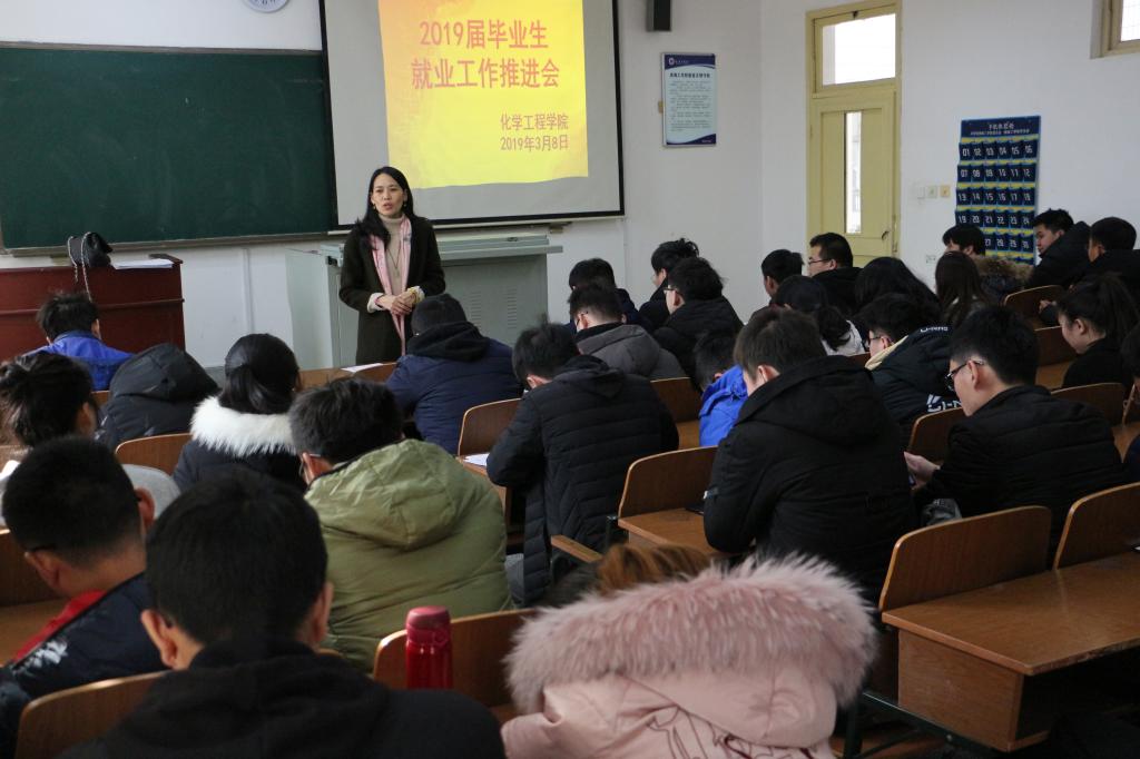 3月8日下午2时,化学工程公司于主楼103室召开2019届毕业生就业工作推进会。化学工程公司党委副书记王改红、负责就业工作辅导员王学梅出席本次会议,近百名未就业的2019届毕业生参加。