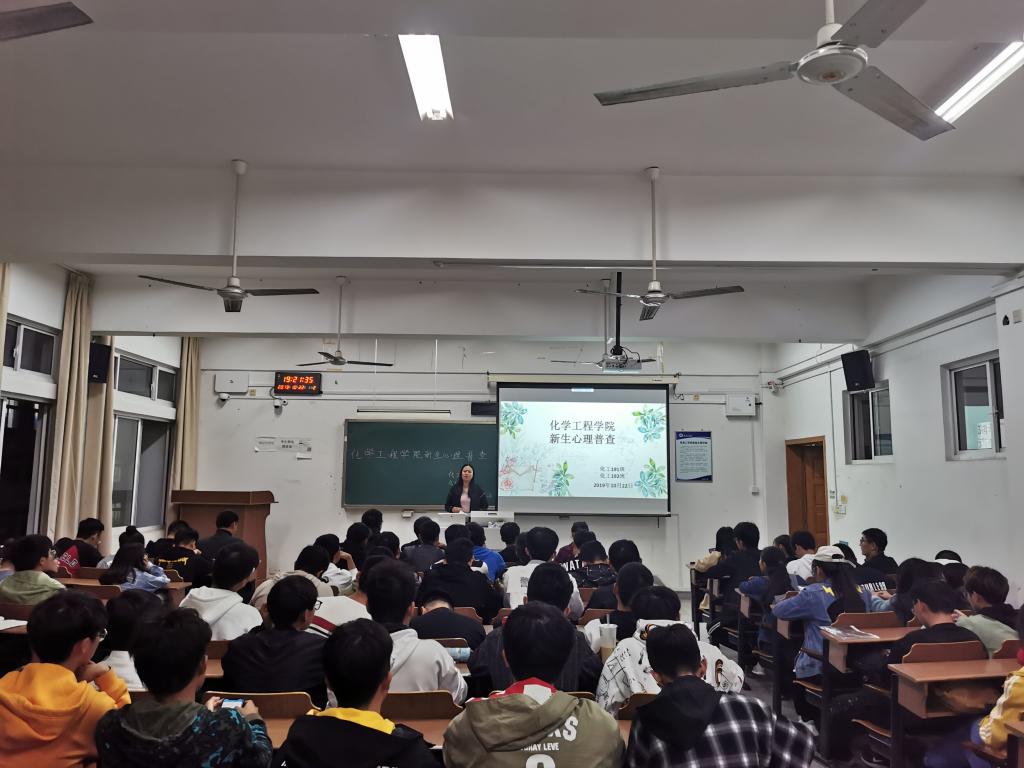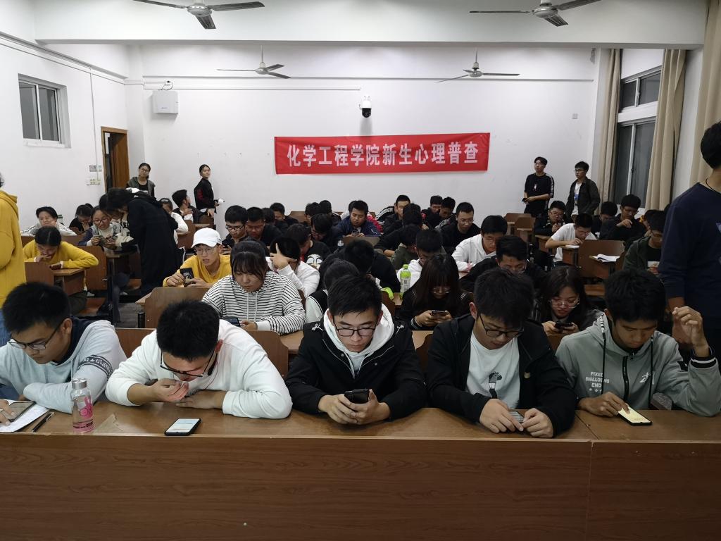 10月22日晚7时,化学工程公司于文通楼317、319和321教室分别进行2019级新生心理普查活动。化学工程公司党委副书记王改红、分管公司心理工作的辅导员王学梅老师出席活动。化学工程公司2019级200余名新生全部参加测试。