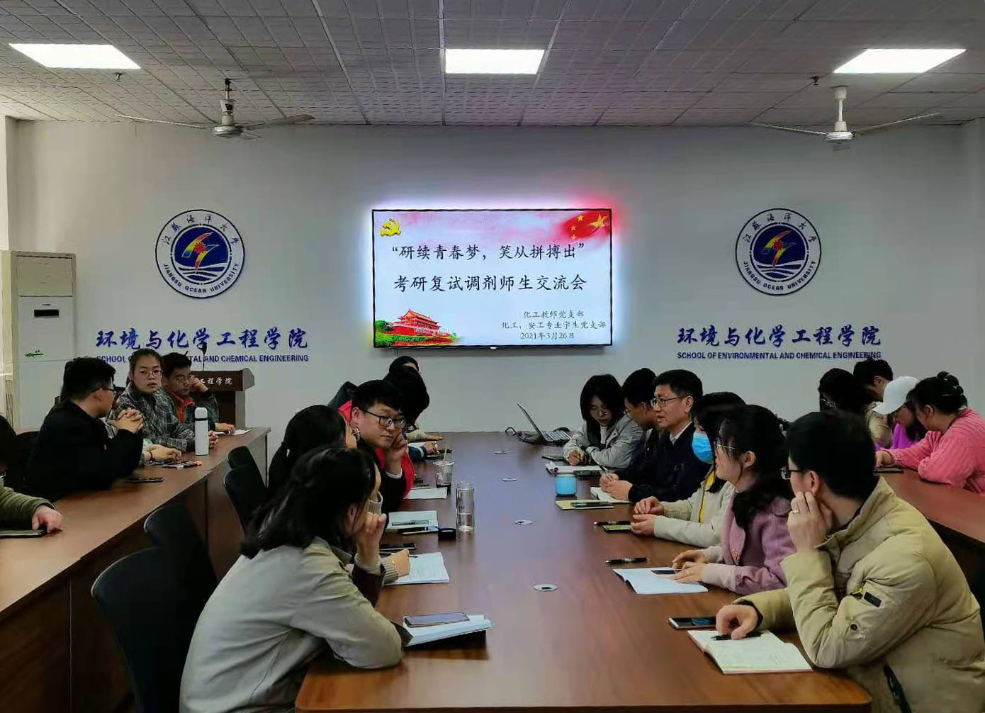 3月26日中午12时30分,化工教师党支部与化工安工专业员工党支部于主楼1003会议室召开“研续青春梦,笑从拼搏出”考研复试调剂师生交流会。化工教师党支部党员、化工安工专业员工党支部全体员工党员参加本次会议。化工教师党支部书记王寿武主持本次会议。