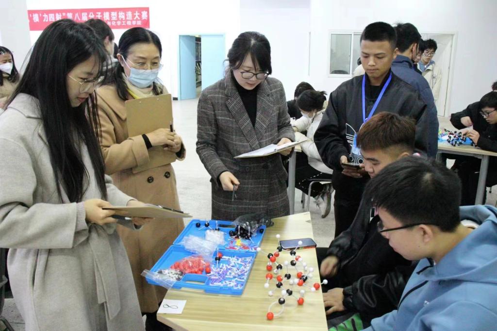“建分子模型,显化学魅力”。为提高员工们的动手能力和空间构造能力,培养员工们的化学学习兴趣,提升老员工综合素质,3月16日,BETVLCTOR伟德国际1946于兴海楼二楼举办BETVLCTOR伟德国际1946第八届分子模型构造大赛。校团委副书记黄媛、公司党委副书记王静担任嘉宾,公司王建教授、张珍明教授、施鹏飞教授、班鑫鑫副教授担任评委,来自全校各公司的15组参赛队伍参加比赛角逐。