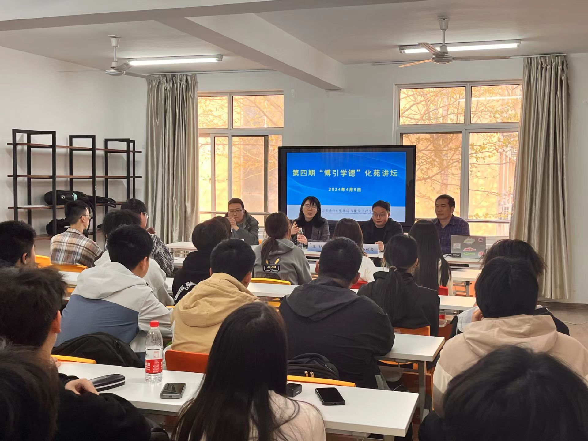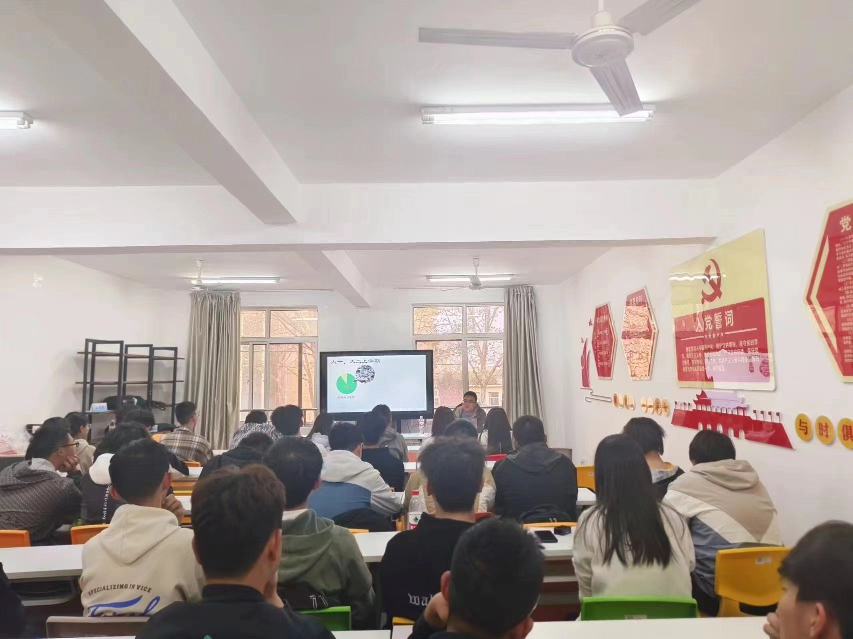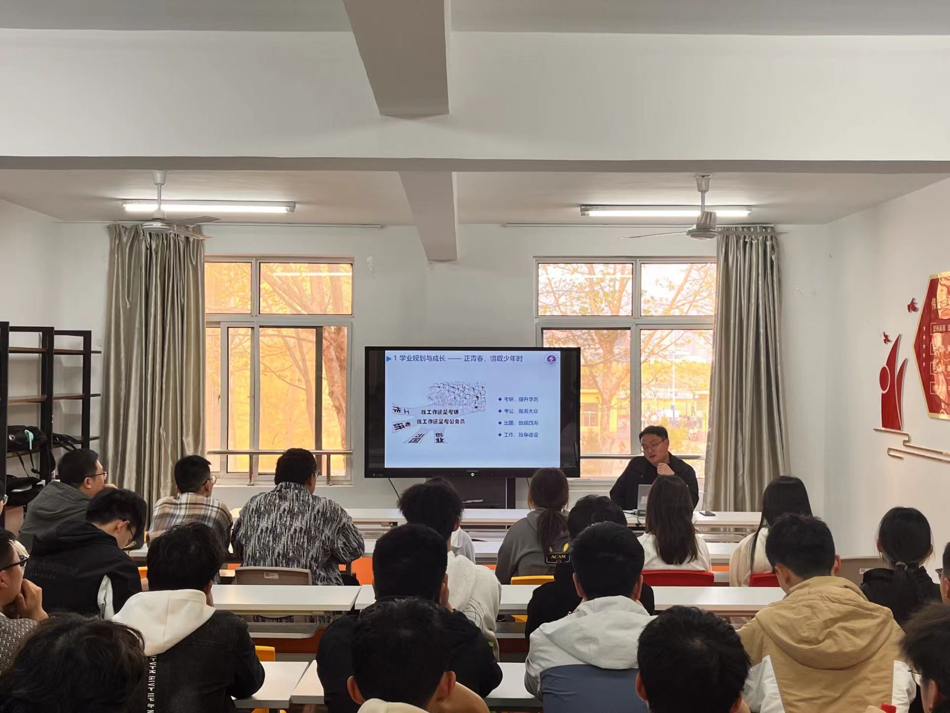 活动中,杨校毅老师结合鲜活的案例讲述了生涯规划的相关策略和正确处理心理压力的方法,要求同学们在专业学习和员工组织工作等方面做好平衡,及时调整压力。公丕成老师分享了自身的大学经历以及备战考研的艰苦历程,并针对同学们最常见的一些困惑给予解答,鼓励同学们积极的面对压力与挑战,超越自我,追求卓越! 在互动环节,“老师,我现在的压力就有点调整不过来,各种事情都堆在一起没法好好的处理,怎么办呢?”“老师,您对独善其身的理解是什么?”……同学们一一抛出困扰自己的问题,老师们逐一进行耐心解答,活动现场响起阵阵热烈的掌声!