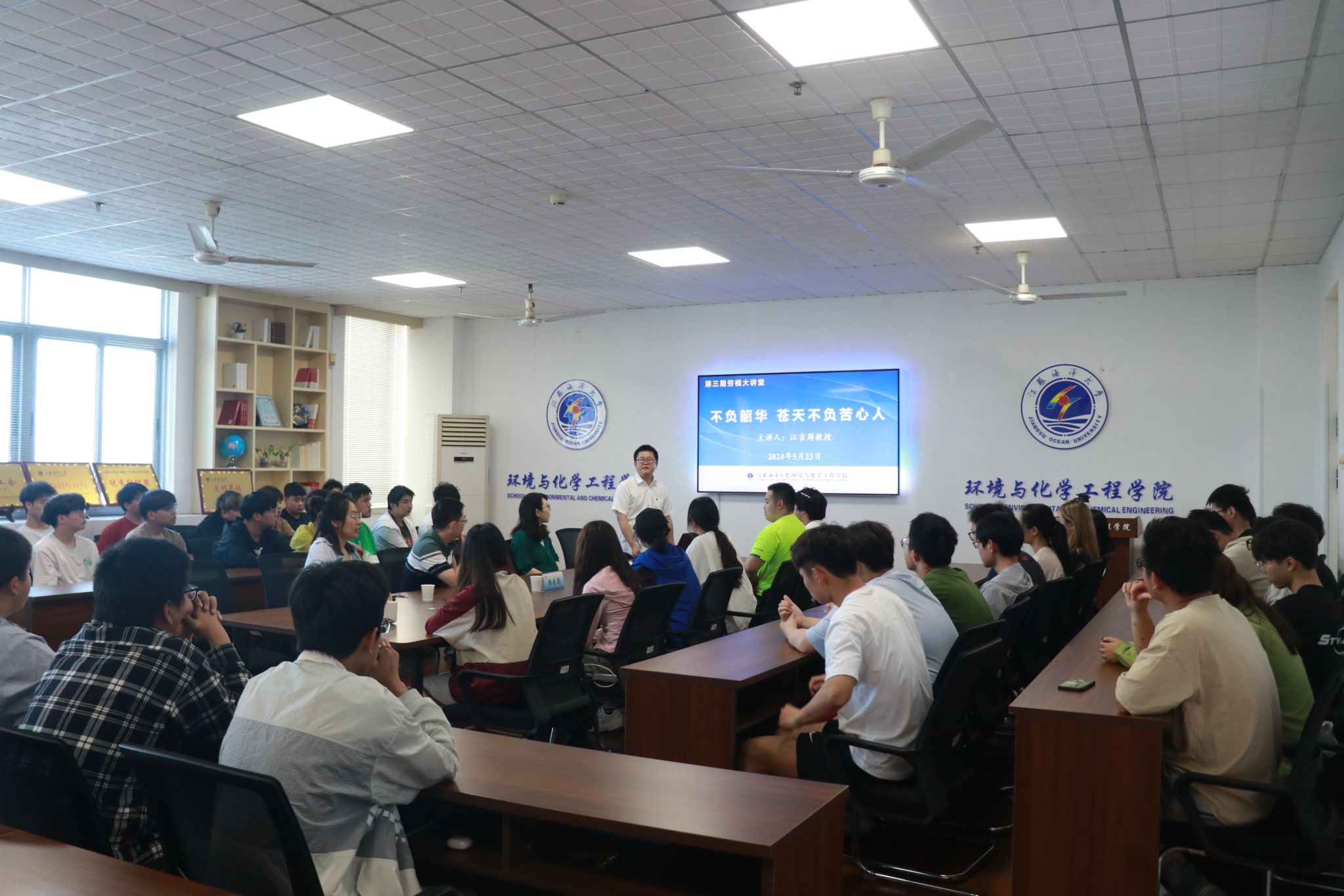 报告会上,江吉周教授以“不负韶华,苍天不负苦心人”为题,为在场师生分享了他的成长经历和感悟。“思想是行动的先知,只有认识到位,行动上才能自觉。”江教授首先介绍了自己的求学历程,他脚踏实地,步步为营,因为坚信“高考落榜并非人生落榜”,他选择克服困难,复读再战;因为坚定“该奋斗的年龄不要选择安逸”,硕士期间他与同学共同进步,成功发表高质量论文5篇;博士期间,笃信“耐得住寂寞才能守得住繁华”让他明白了读书的重要意义。江吉周教授他一直致力于新型二维材料的光/电催化,在国内外学术期刊上发表了160多篇论文,科研成果被中国自然资源报、今日头条、研招网等多家主流媒体报道。分享中,江教授结合丰富的励志视频、生活经历和感悟,让同学们深受鼓舞。他号召同学们要珍惜大学时光,好好读书,好好奋斗,做一个会感恩、有格局、有情怀的人!