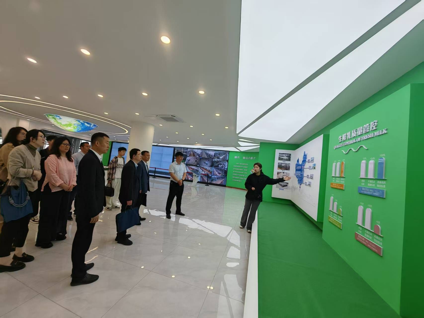 公司一行走进惠丰生物肥料有限公司的生产车间,实地考察了企业利用畜禽粪污研发有机肥料与复合微生物肥料等情况,详细了解了企业的发展历程、运行现状、行业发展趋势、企业技术创新和用人需求等。随后,在江苏省东辛农场有限公司产业部部长孙善加的陪同下,公司一行参观调研万头奶牛生态牧场和江苏农垦农产品检测有限公司,了解东辛农场在畜牧业生态循环和智能化生产方面情况,以及东辛粪污资源化利用等技术在牧场的绿色生态发展和智慧牧场建设的广泛应用。