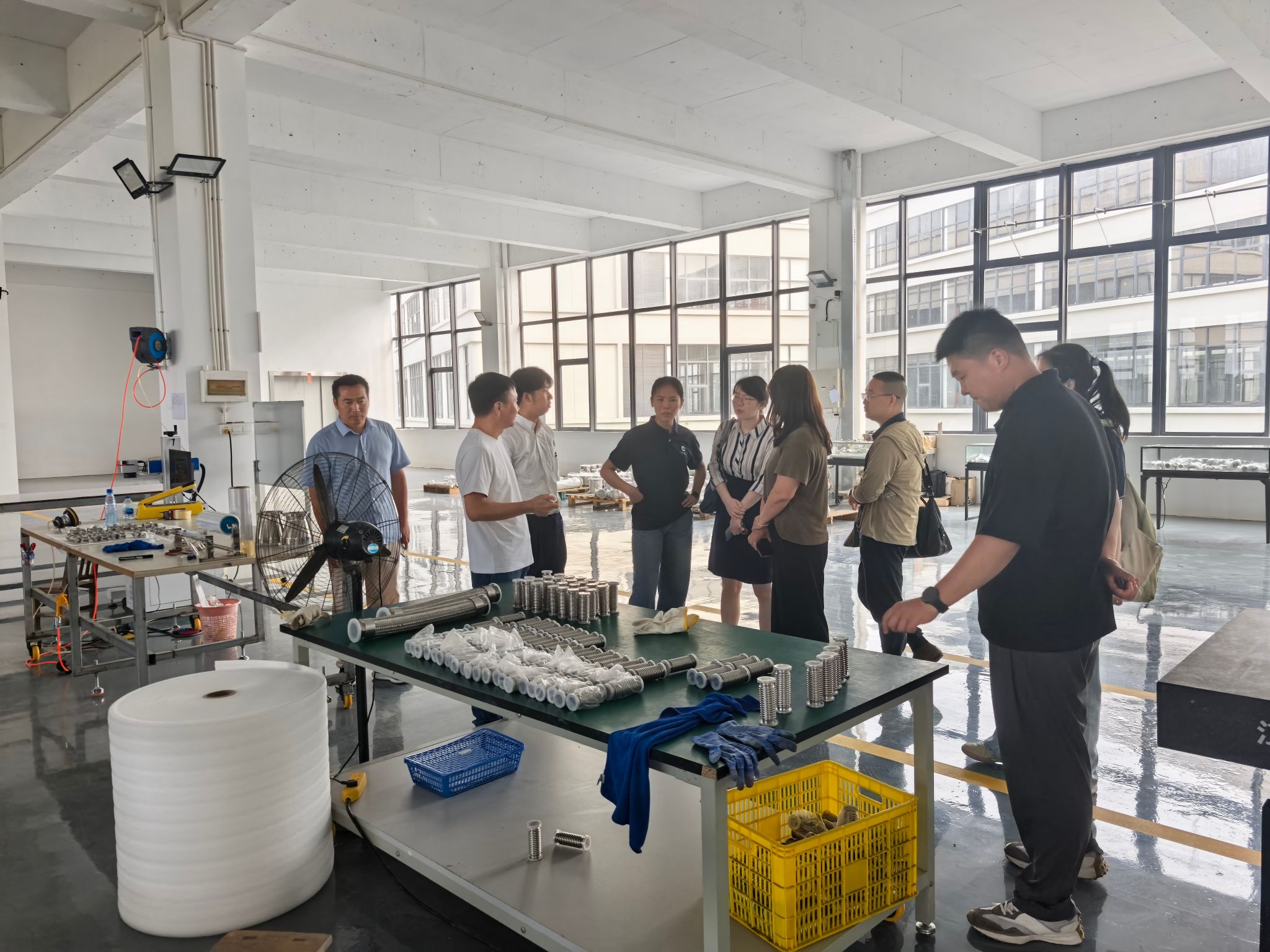 6月25日,公司一行来到无锡每美文化传媒有限公司,该公司专注于内容创作、品牌营销等业务,在短视频制作、直播运营等方面成果显著。公司总经理、17级土木员工唐顺涛详细介绍了公司的业务范围、发展规划以及行业前景。双方就老员工创新创业竞赛、员工社会实践等方面开展了探讨,希望进一步加强全方位校企合作。随后,大家来到无锡新扬真空机械有限公司,在企业负责人的陪同下,公司一行参观了生产车间和研发中心,深入了解企业的生产流程、技术创新以及产品在化工、环工等方面的应用领域。双方围绕专业人才培养、技术研发合作等方面进行了深入探讨。