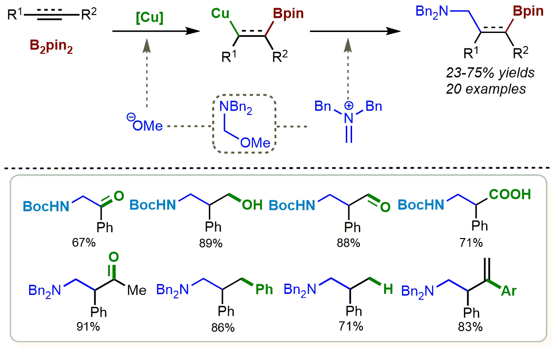 图12 铜催化碳碳不饱和键的2-氨基硼酸酯合成