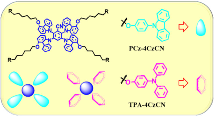 图2 PCz-4CzCN和TPA-4CzCN的分子结构和形状图