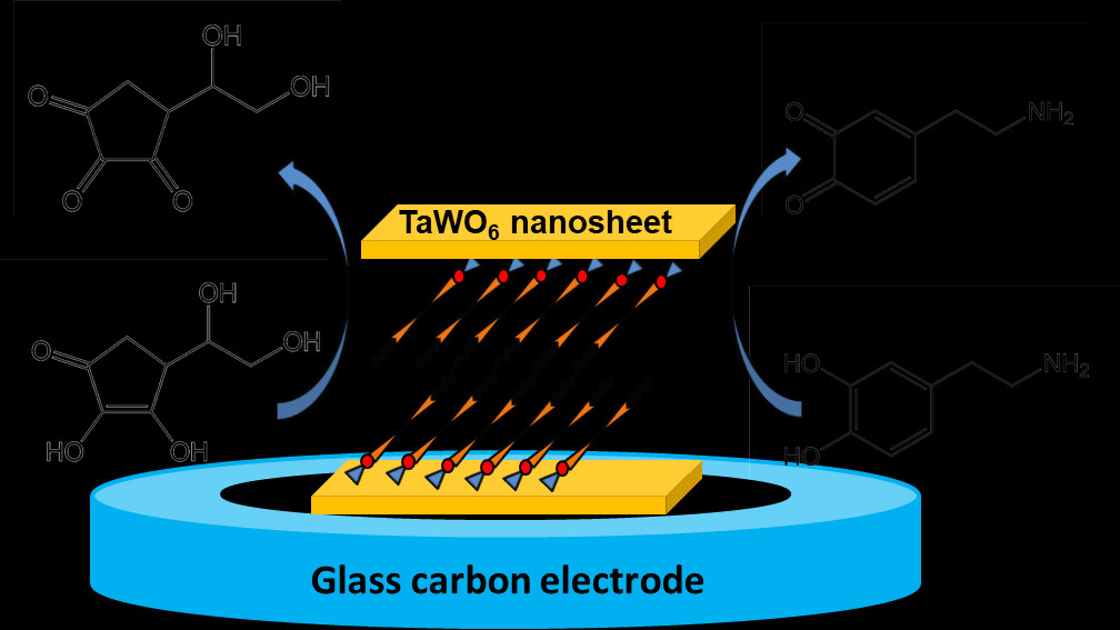 吴世宁同学采用客体交换法和剥离重组法引入了偶氮苯衍生物,将C3F7-azo+Br-插入到LiTaWO6层板间,首次成功合成C3F7-azo+-TaWO6纳米复合材料。对C3F7-azo+-TaWO6进行XRD、SEM、TEM、EDS和FTIR等设备进行表征。然后将该纳米复合材料滴涂于玻碳电极上制备修饰电极(C3F7-azo+-TaWO6/GCE)并且探索其电化学性质。从实验结果看,C3F7-azo+-TaWO6/GCE的检出限很低,检测范围很广,可以在同时检测抗坏血酸和多巴胺的同时将两者的电位区分开,使得抗坏血酸和多巴胺之间的电势差达到356 mV。与C3F7-azo+/GCE相比,当在LiTaWO6层之间插入C3F7-azo+时,C3F7-azo+-TaWO6/GCE的稳定性更高。此外,C3F7-azo+-TaWO6/GCE在人体尿液样品中具有极好的灵敏度和抗干扰性。所有实验结果表明,C3F7-azo+-TaWO6/GCE可用作灵敏的电化学传感器。相关成果发表在Journal of The Electrochemical Society (10.1149/1945-7111/abef4c),Journal of Electroanalytical Chemistry (10.1016/j.jelechem.2020.114403)期刊上。