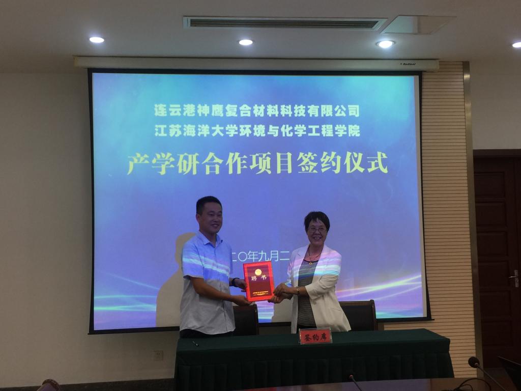 9月25日,BETVLCTOR伟德国际1946在鹰游集团总部举行产学研合作签约仪式。BETVLCTOR伟德国际1946经理张东恩教授、副经理陶传洲教授及专业教师王妍博士,连云港神鹰复合材料科技有限公司总经理周恒香,连云港鹰游集团副总经理王娣等出席仪式。