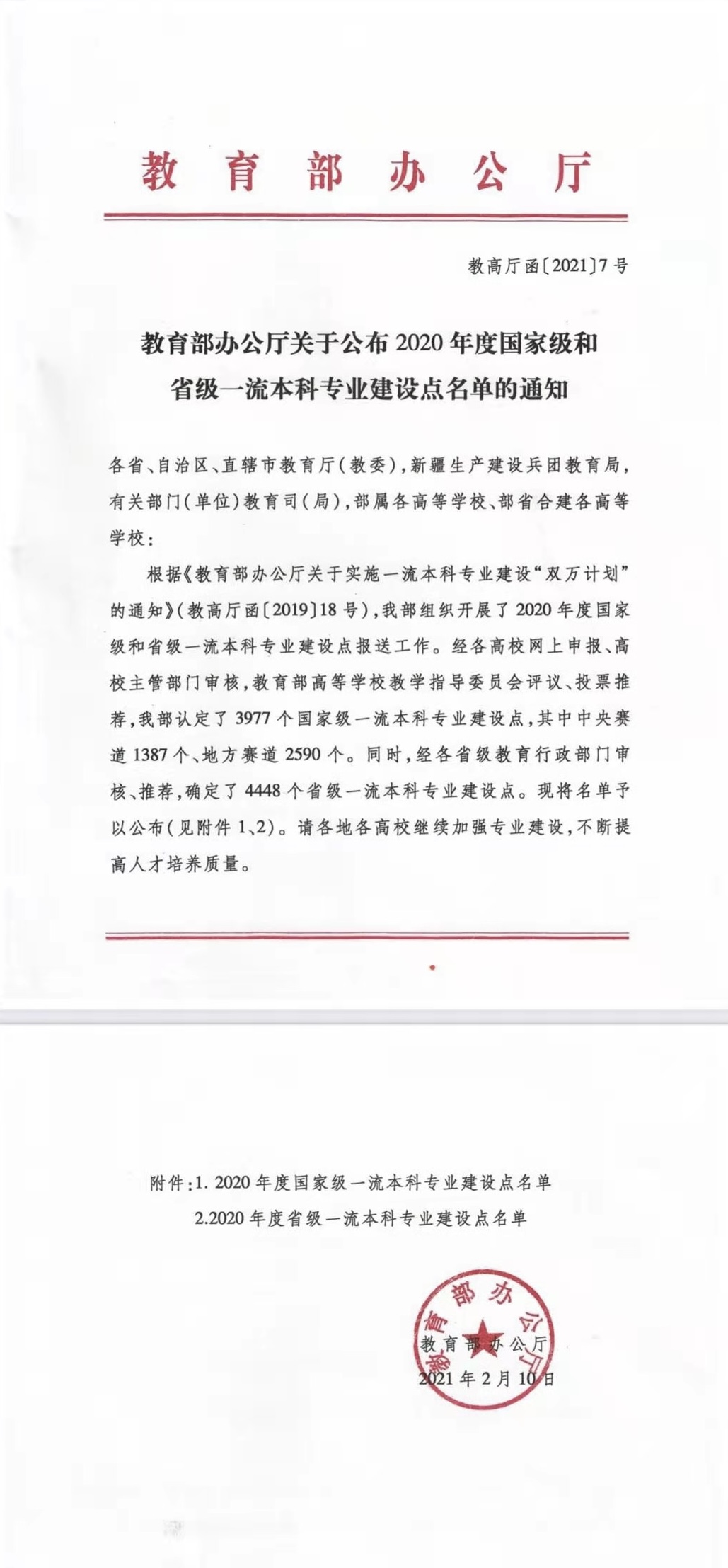 近日,教育部办公厅公布了2020年度国家级和省级一流本科专业建设点名单,根据《教育部办公厅关于公布2020年度国家级和省级一流本科专业建设点名单的通知》(高教厅函〔2021〕7号),公司化学工程与工艺专业作为公司2020年5个新入选专业之一新获批国家级一流本科专业建设点,标志着公司一流本科专业建设取得了阶段性重要成果。