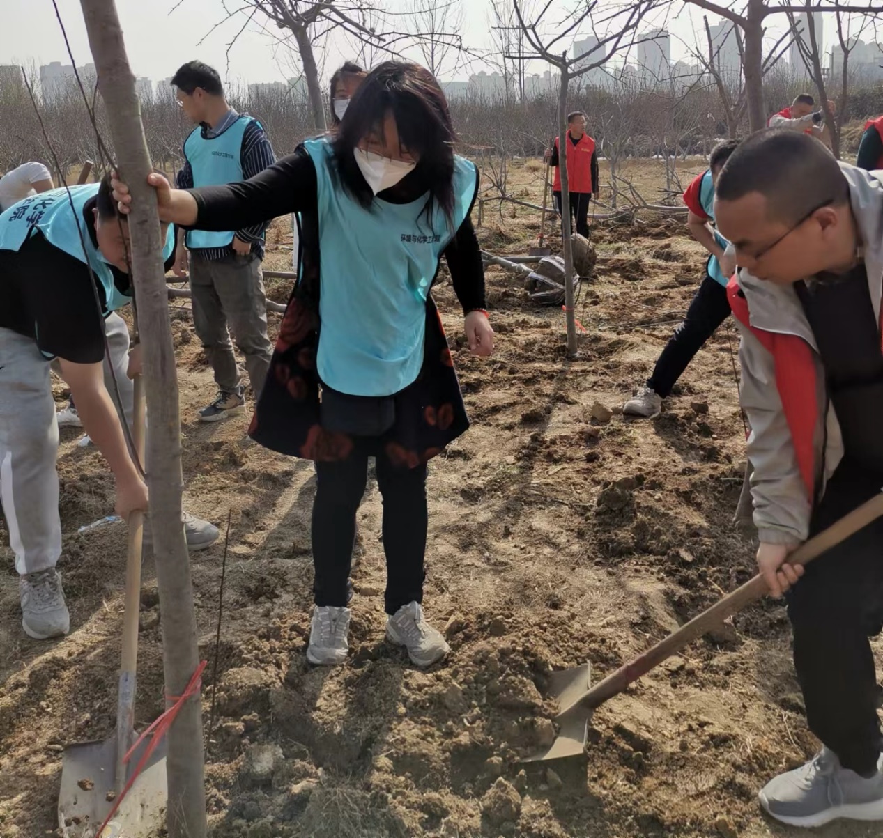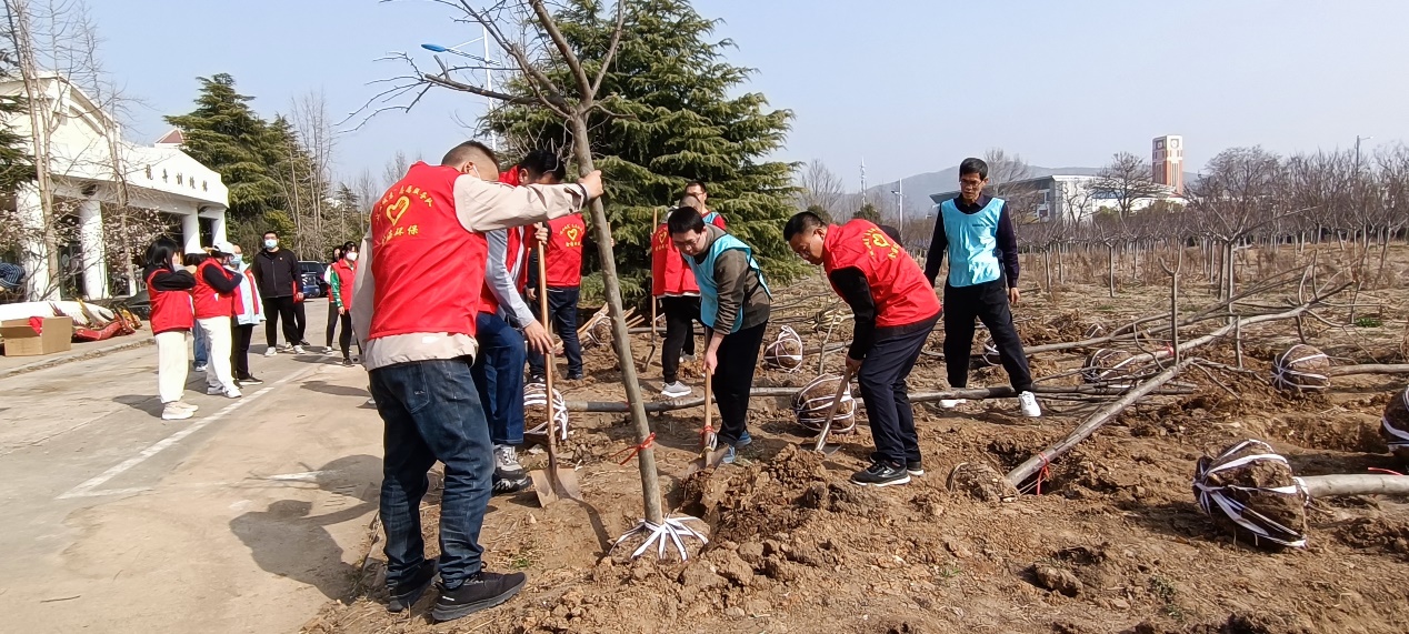 活动现场,身穿红、蓝马甲的两个支部的党员同志,共同挖坑、植苗、定根、培土、浇水,挥锹扬锄,干劲十足。一棵棵树苗稳稳地扎进土里,焕发出一片片勃勃生机。党员们表示,植树于林,是植“念”于心,种下的是对员工成才的期盼,是对公司和公司高质量发展的信念,更是对环保事业全面推进的决心。