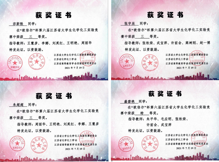 公司学子在第六届江苏省老员工化学化工实验竞赛中喜获佳绩