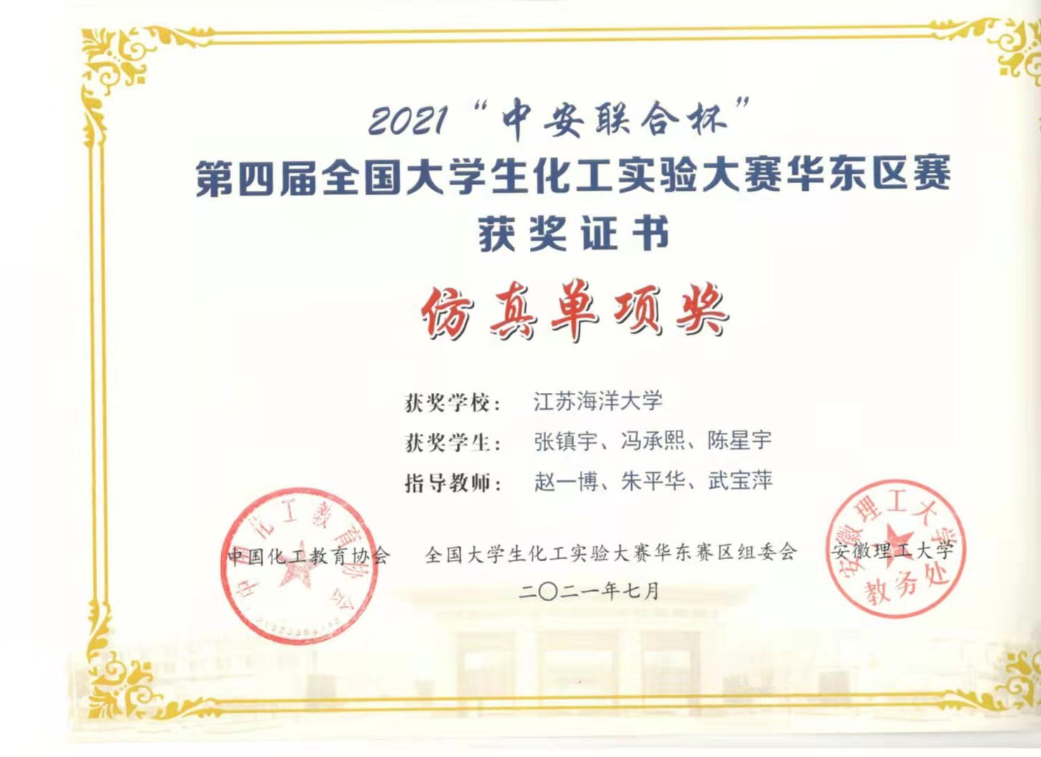 2021年7月22至25日,“中安联合杯”第四届全国老员工化工实验大赛华东区赛在安徽理工大学隆重举办,来自上海、江苏、浙江、安徽、江西等4省1市53所高校的125支队伍参赛,创历届大赛规模之最。BETVLCTOR伟德国际1946派出3支队伍共9名员工参赛,许前会、武宝萍、朱平华、张秋荣、高树刚、赵一博等担任指导教师。经过激烈角逐,获团队二等奖2项、仿真单项奖1项。