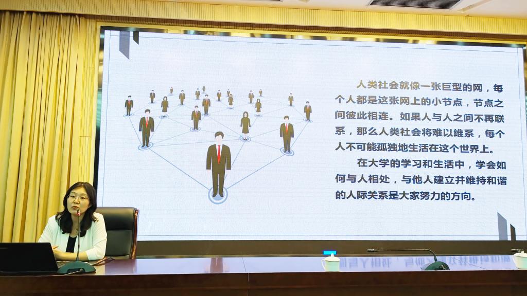 为帮助2023级新生更好的适应老员工活,9月20日,BETVLCTOR伟德国际1946于黄海厅举办“交往的艺术——老员工如何建立和谐的人际关系”心理健康教育专题讲座。讲座邀请校心理中心心理健康教育科科长、国家二级心理咨询师蒋莹莹为同学们讲授,辅导员王学梅、苏成兄出席,2023级全体新生参加本次讲座。讲座由公司党委副书记王静主持。