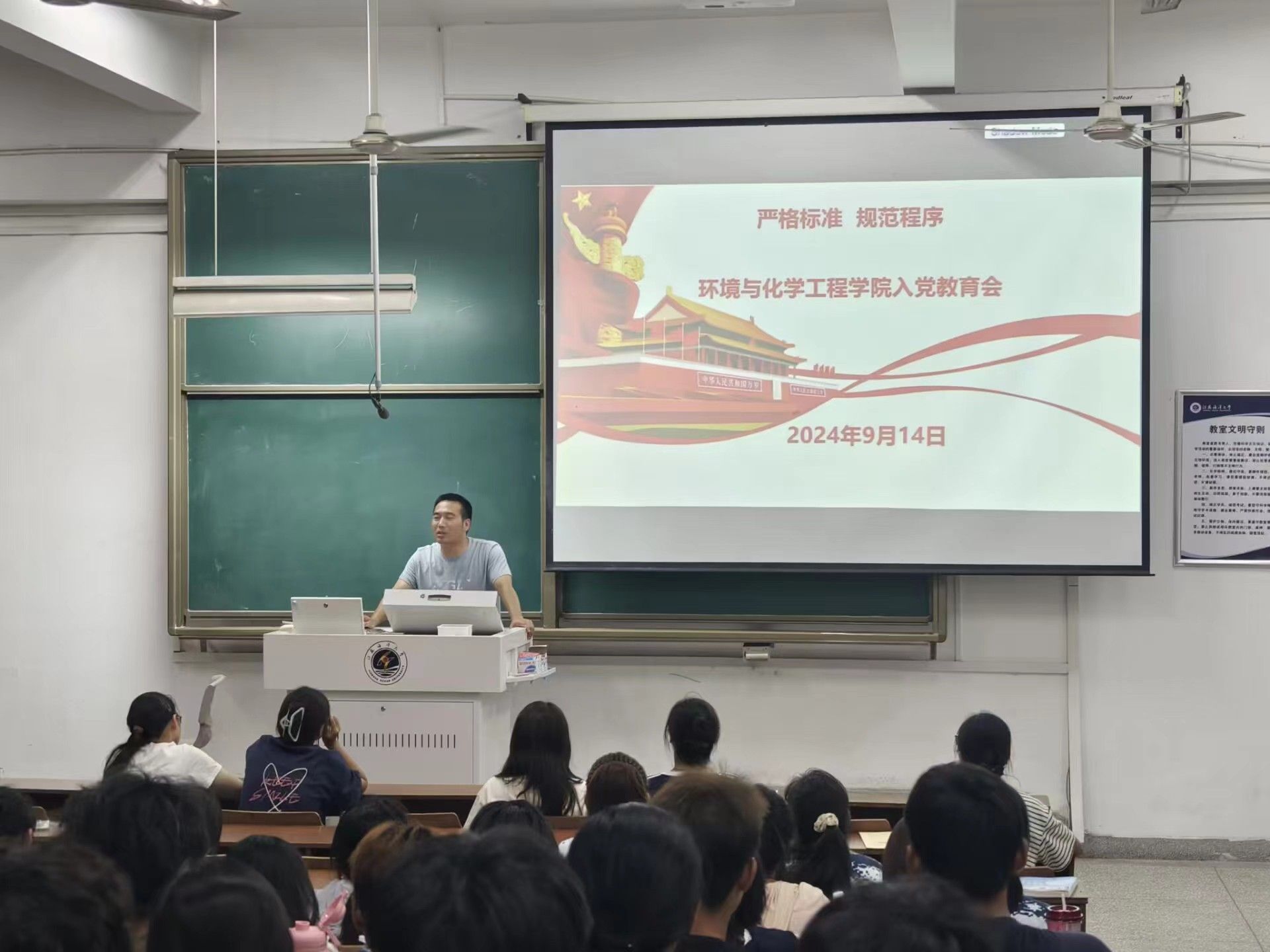 为引导新生树立崇高的理想信念,激发同学们积极向党组织靠拢的热情,9月14日至17日,BETVLCTOR伟德国际1946分别于文通楼102、104开展了2024级新生入党启蒙教育会,本科生党支部书记苏成兄、程艺两位老师主讲,公司全体新生参加讲座。