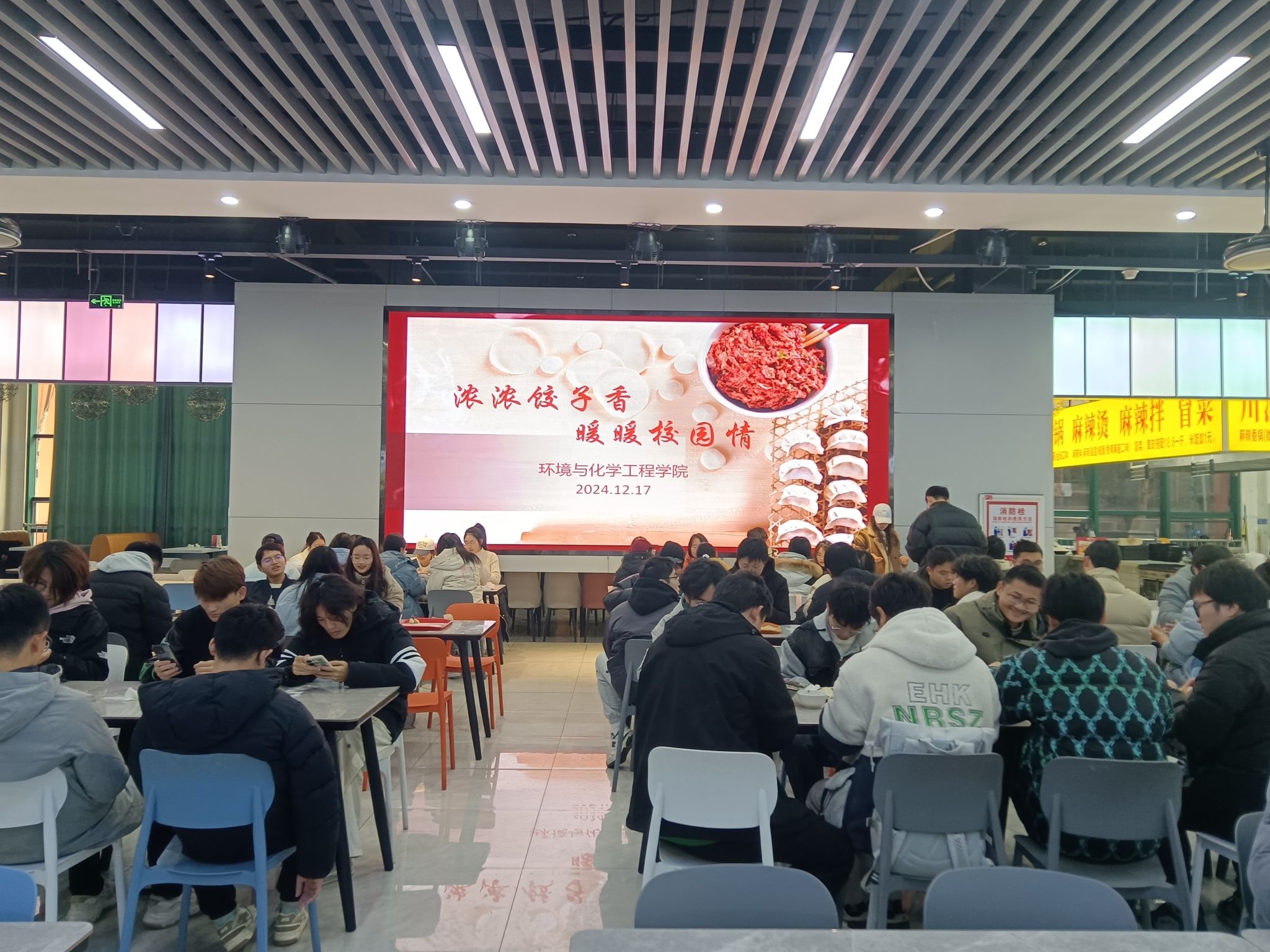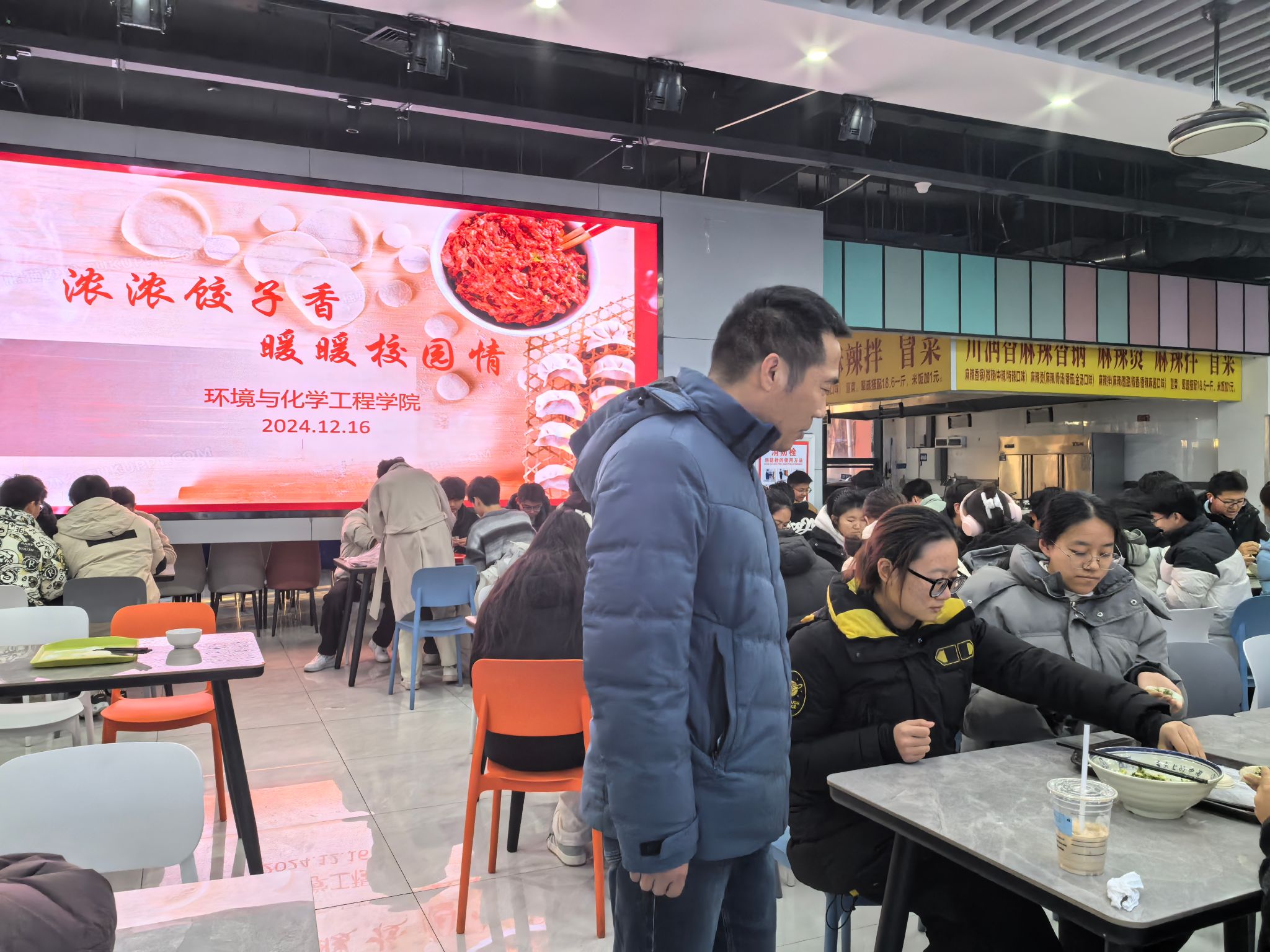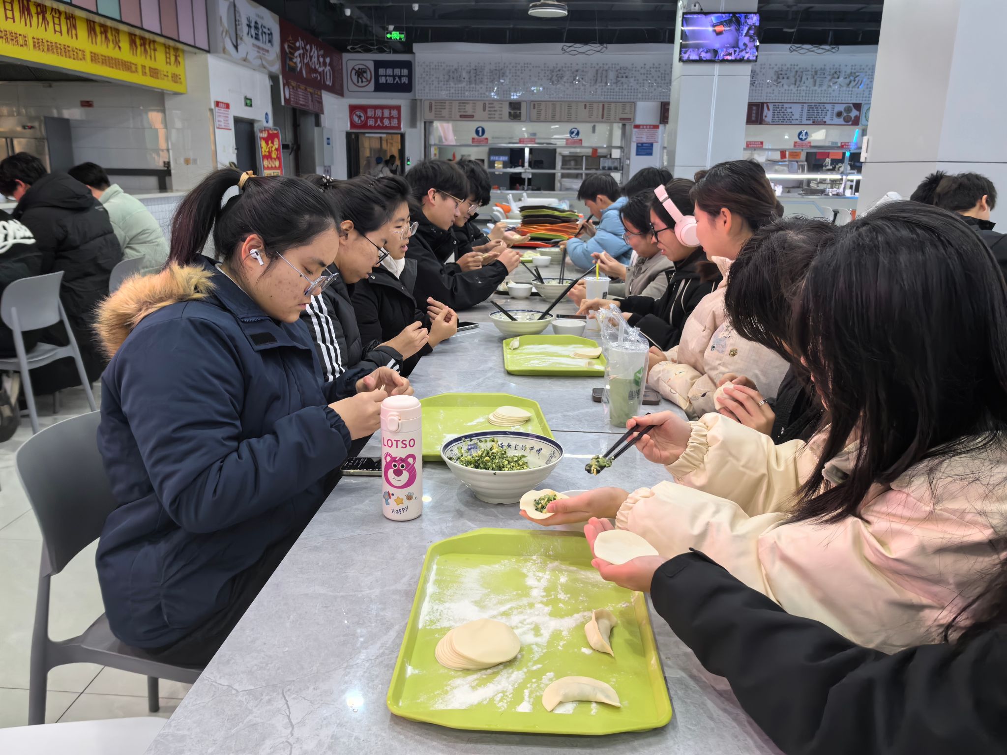 活动现场,同学们热情高涨,大家围在桌子边一起包饺子、唠家常,互相切磋着手艺,时不时地交流着自己做饺子的“独家秘籍”,在你一言、我一语中,一排排个性十足的饺子就诞生了。随后,同学们津津有味地享受着自己的劳动成果,每个人的脸上都洋溢着温暖和笑意。活动结束后,大家自发组织打扫好食堂的卫生,充分体现了崇尚劳动、尊重劳动和热爱劳动的精神。