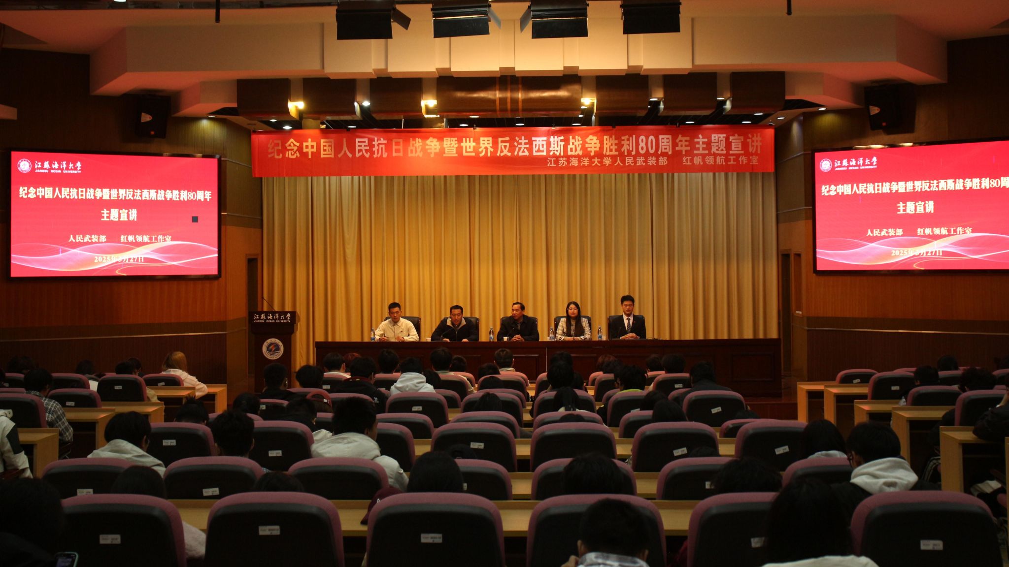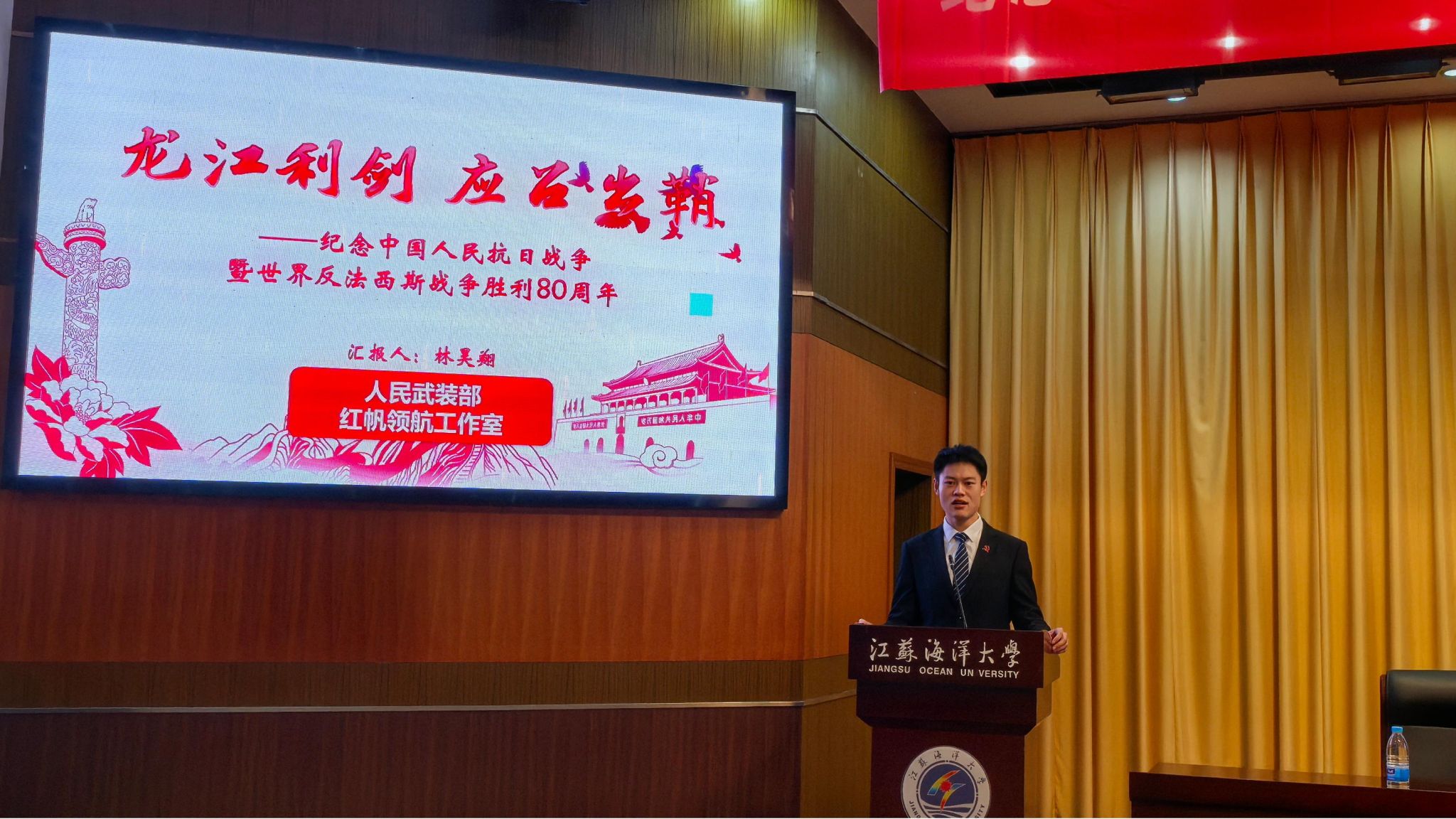 为纪念中国人民抗日战争暨世界反法西斯战争胜利80周年,弘扬伟大抗战精神,传承红色基因,激发青年员工的爱国情怀,3月27日晚,由人民武装部主办、“红帆领航”辅导员工作室承办的纪念中国人民抗日战争暨世界反法西斯战争胜利80周年主题宣讲在文博楼报告厅举行。人民武装部副部长张志浩、国防教育科负责人仲伟雨、文法公司退役老员工林昊翔、应用技术公司退役老员工路达、各公司近200名员工代表参加活动。活动由“红帆领航”辅导员工作室负责人苏成兄主持。
