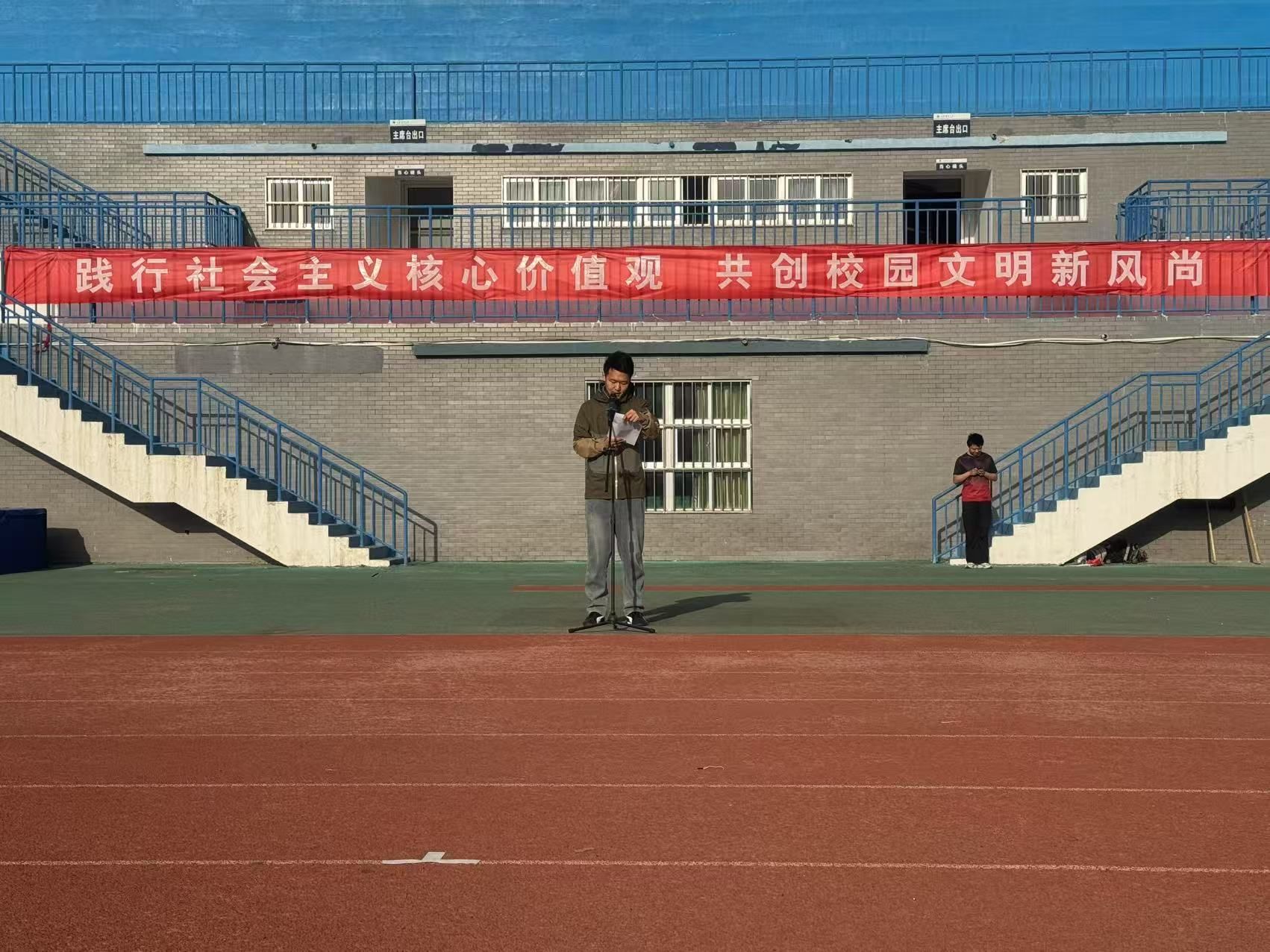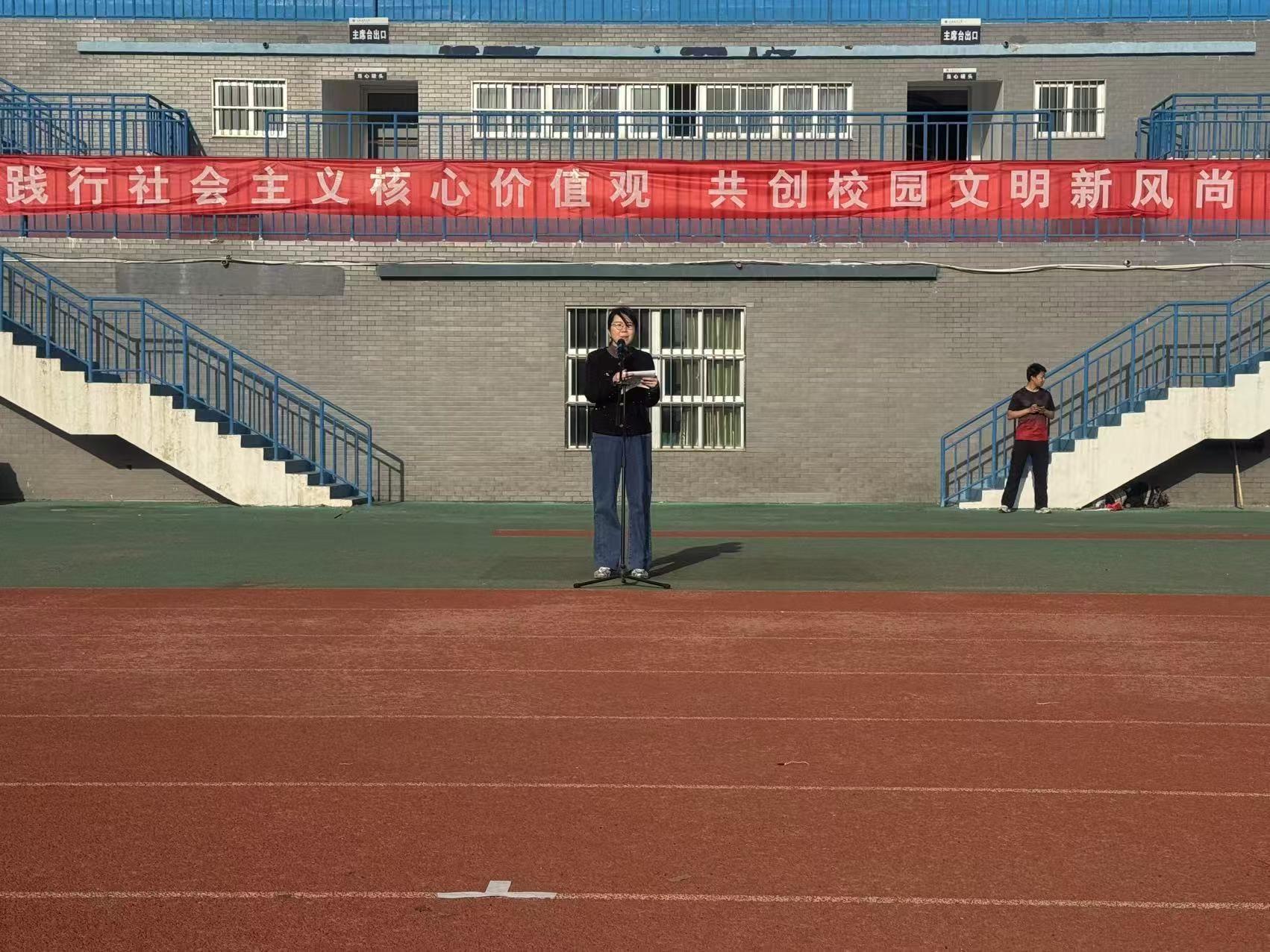 公司党委副书记王静讲话,她强调了践行社会主义核心价值观对青年和国家的重要意义,希望环化学子将其内化为精神追求,外化为实际行动。接着,她围绕学风建设通报了各班级近期出勤及学业通过率等数据,强调2025 年公司各班级学风建设目标为提升学业和四级通过率。她希望同学们以升旗仪式为契机,将社会主义核心价值观教育与校园文明建设紧密结合,在实践中推动社会主义核心价值观教育落地生根,营造文明和谐校园新风尚。