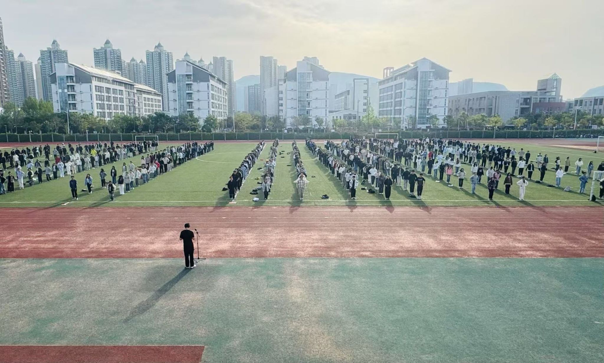 升旗仪式结束后,全体师生在操场上同做广播体操。