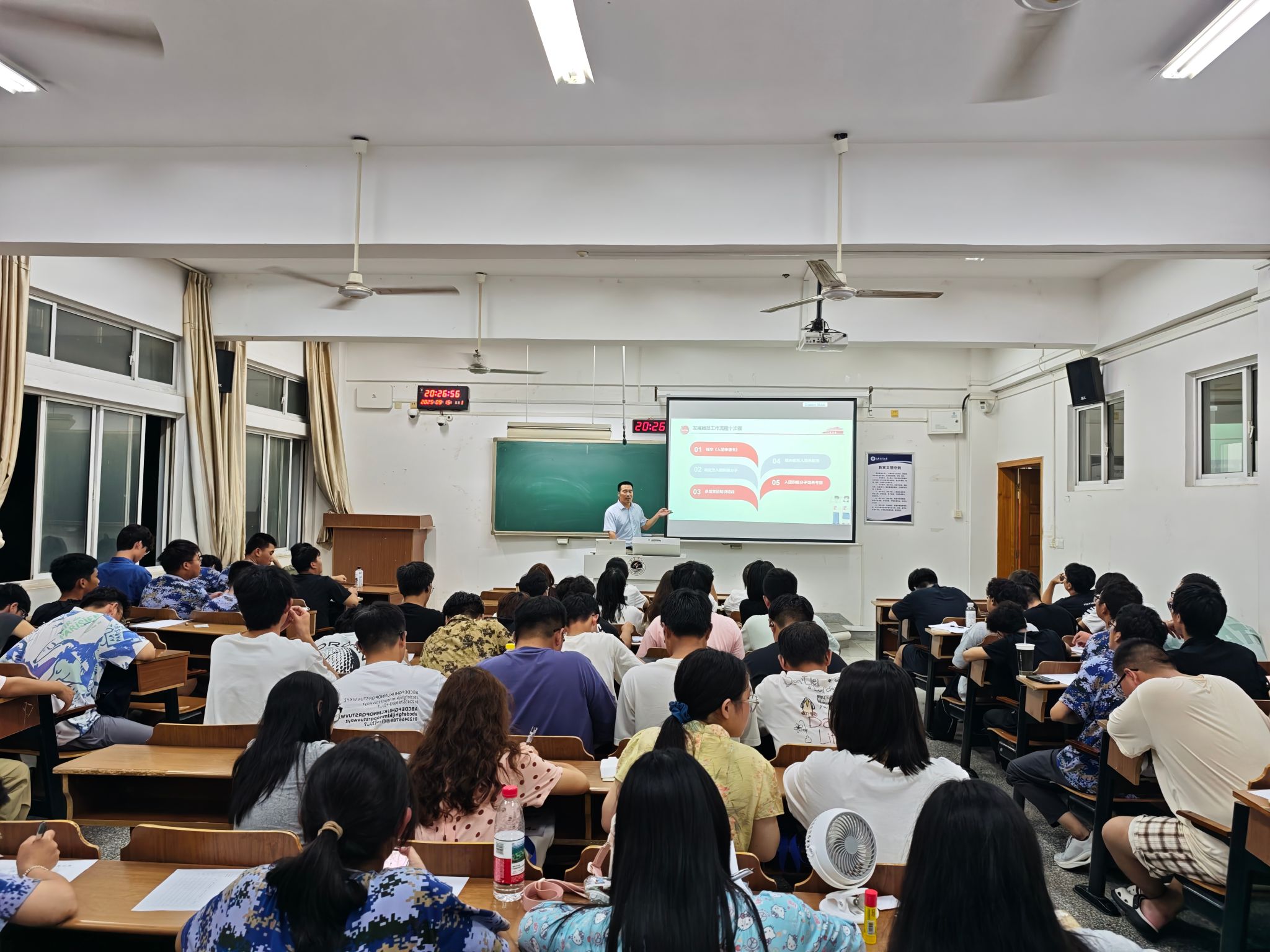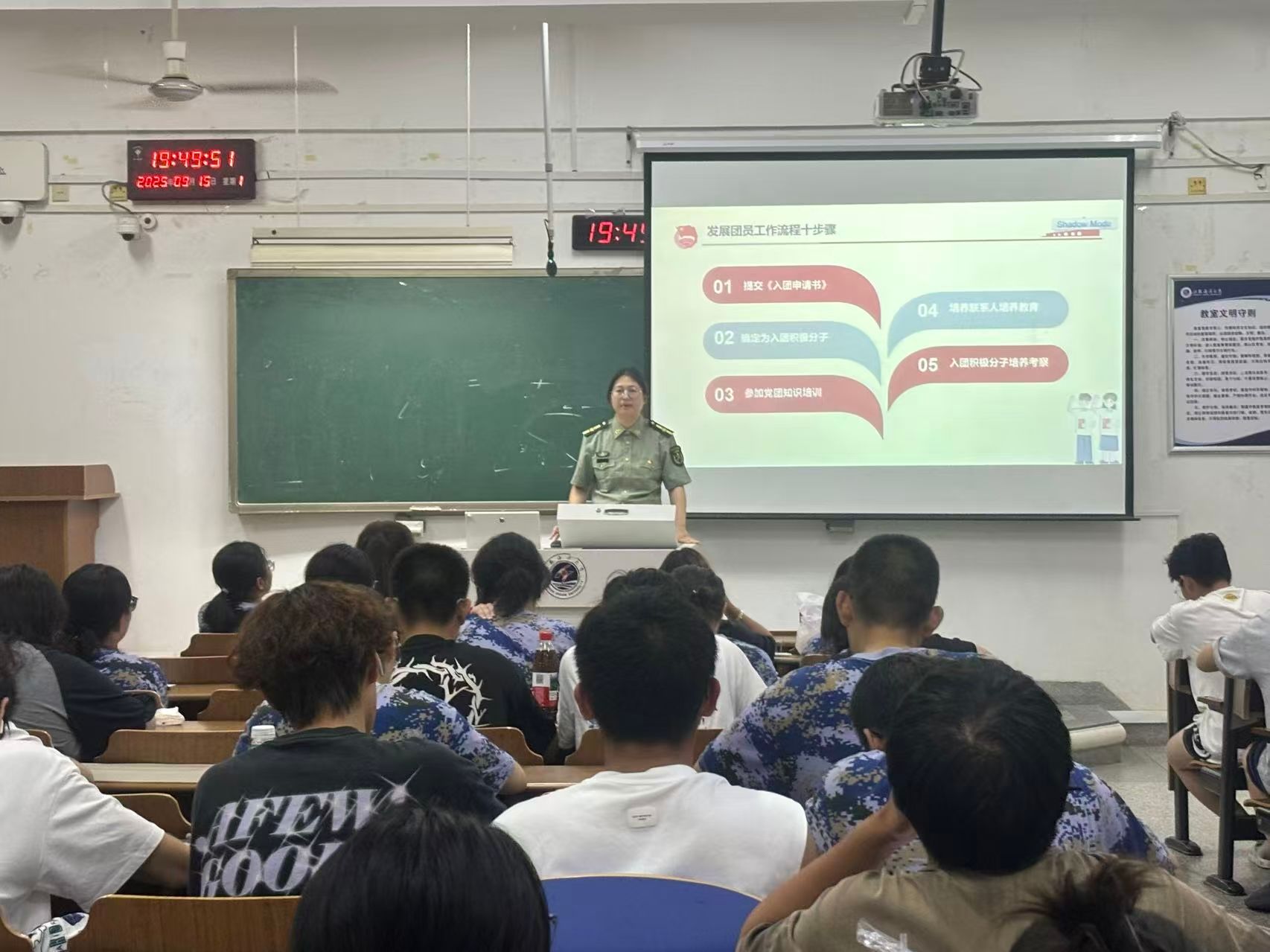 入队、入团、入党,是青年追求政治进步的“人生三部曲”。党团教育培训中,本科生党支部书记结合相关文件要求,围绕发展团员十步工作流程,入党基本条件、入党规范流程、入党材料撰写规范等展开详细讲解。