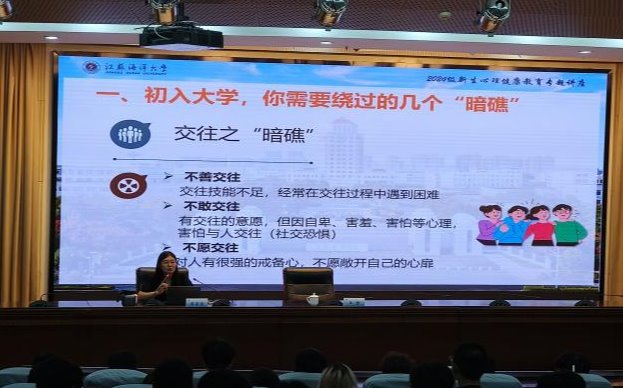 活动伊始,蒋老师引出几个老员工不可绕开的“暗礁”,并结合案例帮助同学们更好地了解在开启校园生活中,新生们人际交往、目标树立、适应环境等方面可能存在的心理问题,帮助同学们深刻地感受到处理好人际关系和应对压力的重要性。蒋老师强调:要学会积极沟通,以建立和谐的人际关系;要理清他人交际的边界,把握好交往尺度,为自己与他人提供一个舒适的个人空间。会上,蒋老师向25级新生讲述了缓解心理压力的小技巧,分享了校内及校外的官方心理援助渠道,鼓励同学们积极寻求专业人士的帮助,更好地解决自身心理压力。