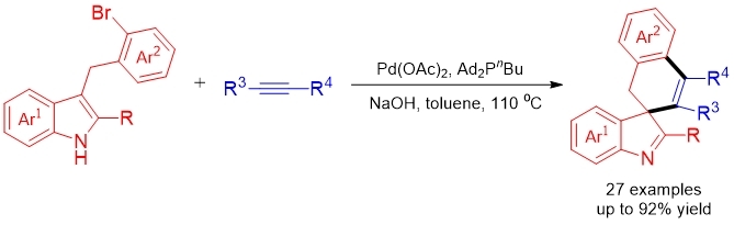 基于炔烃插入反应构建重要的全碳季碳螺环假吲哚分子
