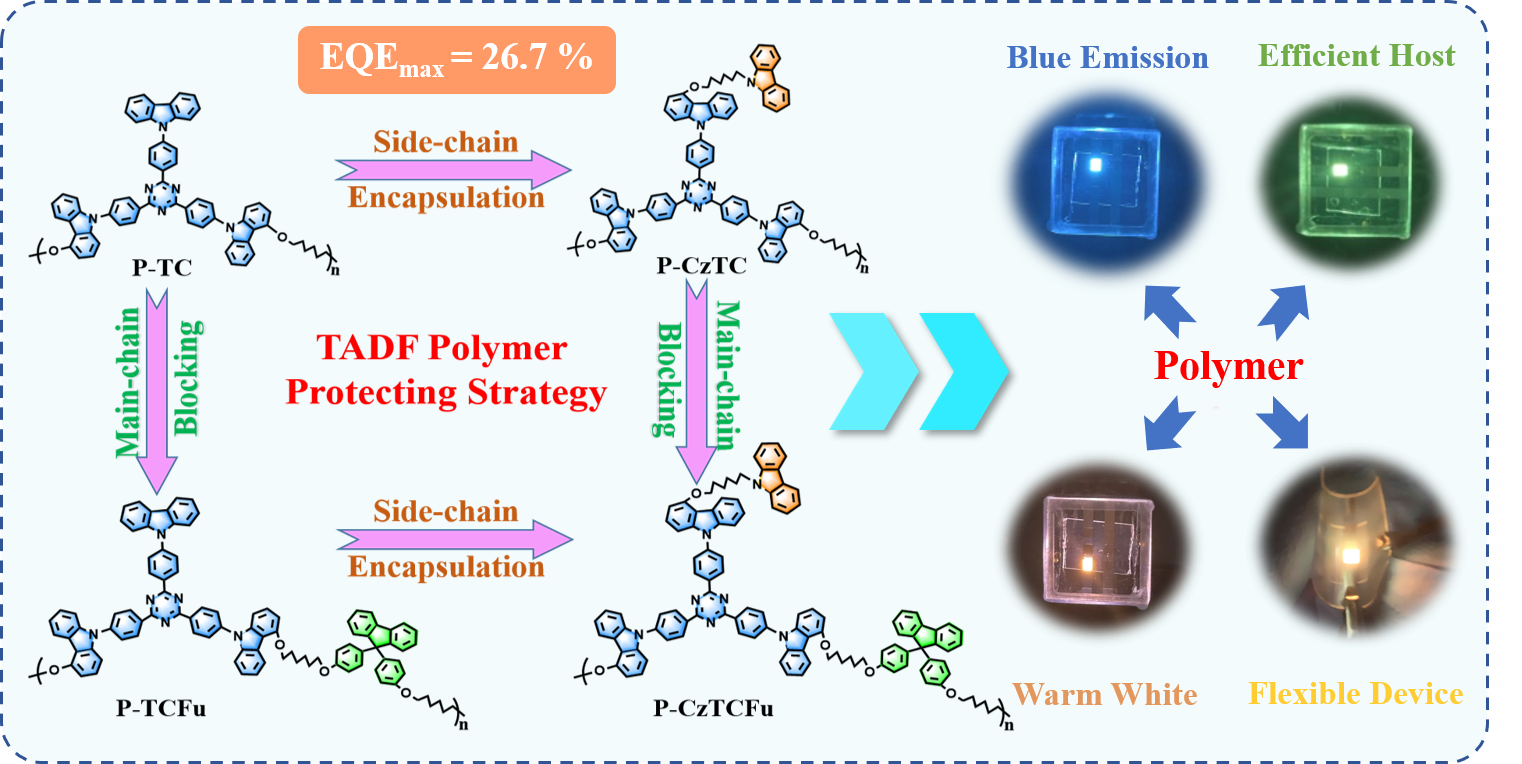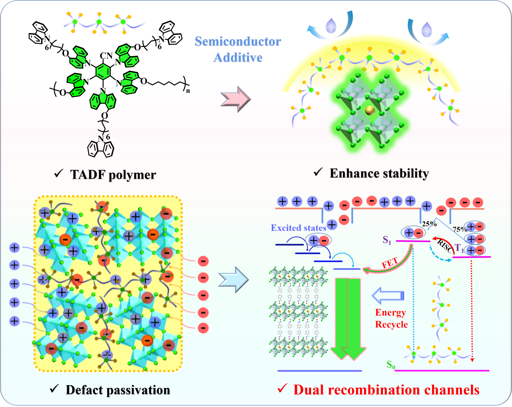 基于TADF聚合物材料的OLED和PeLED的器件发光图以及机理图