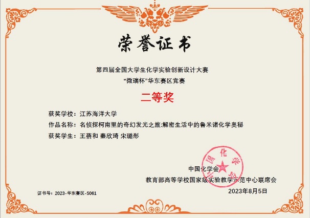 本次比赛共有江浙沪64所高校的163支队伍报名,经赛会初审后确定90支队伍参加现场答辩。竞赛成绩由实验作品网上评审成绩和现场答辩成绩两部分组成,比赛采用双盲形式。经过激烈角逐,公司参赛的科普实验设计作品“电池的神奇魔法-柔性电池的华丽蜕变”(指导教师:王明艳、赵新辉)、“名侦探柯南里的奇幻发光之旅:解密生活中的鲁米诺化学奥秘”(指导教师:赵一博、何文静),均荣获二等奖。